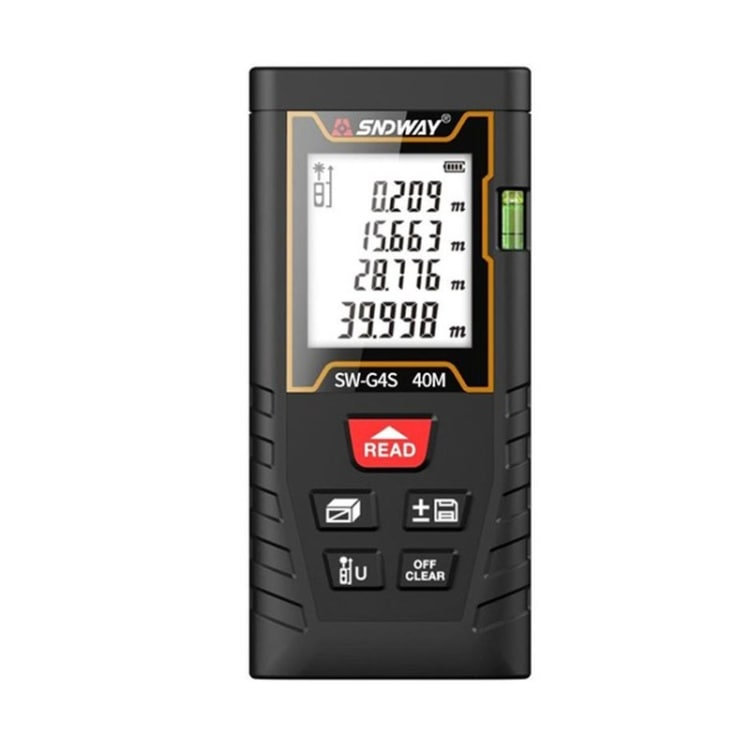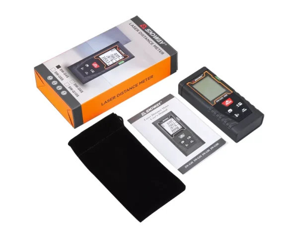 U paketu:, 1 x Laserski metar, daljinometar, laser metar, 1 x Torbica za nošenje uređaja, 1 x Upustvo za upotrebu