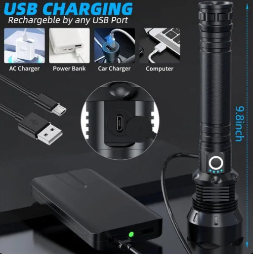 Štaviše, naša LED baterijska lampa ima funkciju prikaza snage, tako da možete na prvi pogled odrediti preostalu snagu, a da ne morate da pogađate da li treba da se napuni