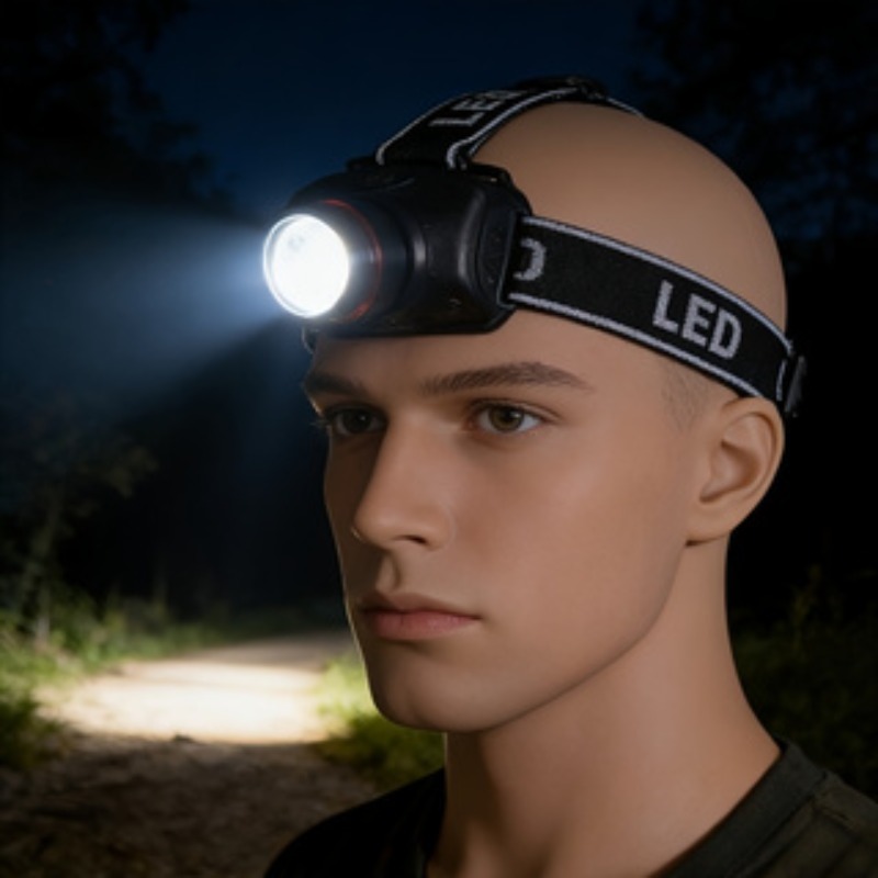LED naglavna lampa velike snage 3W crna | Unutrašnja spoljašnja svetlost, režim treptanja, zatamnjivanja i jarkog svetla, svetlo za pecanje, punjiva litijumska baterija, napajanje preko USB-a, kapacitet