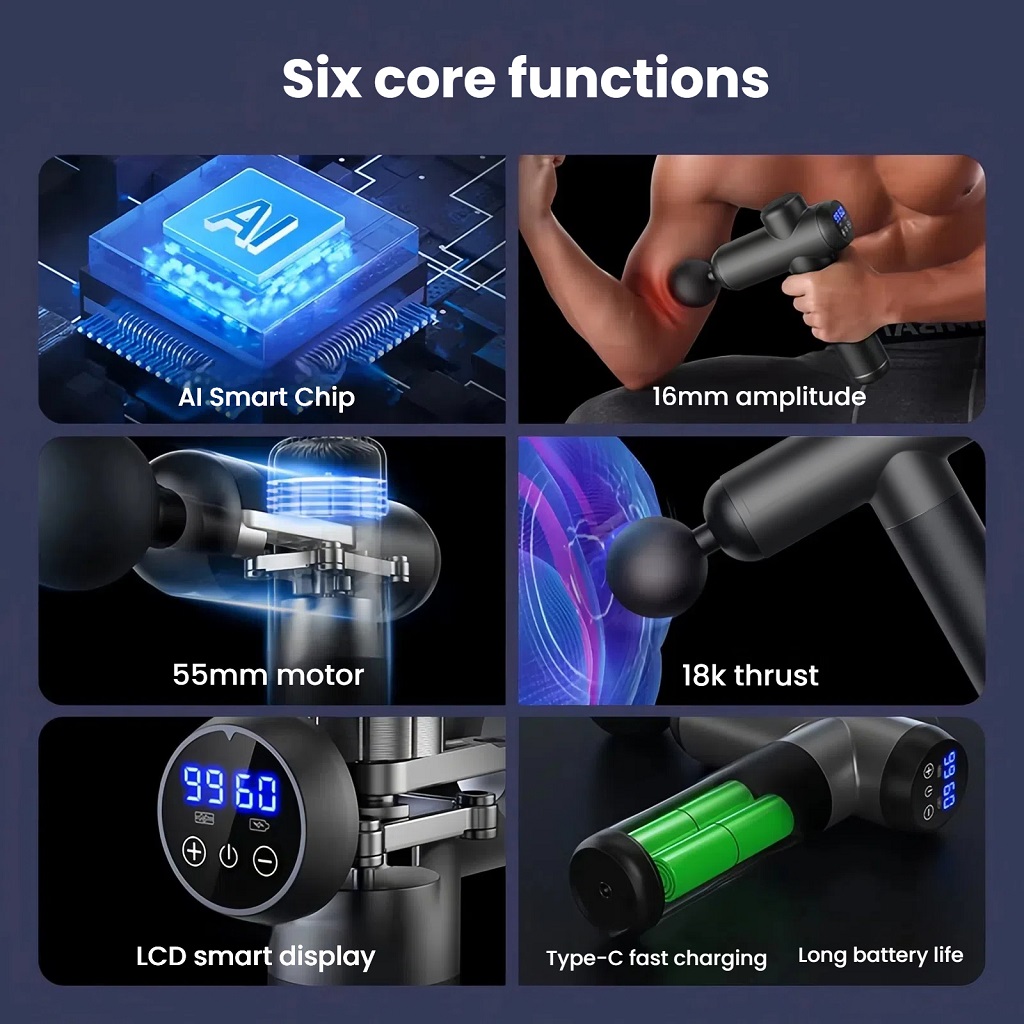 Masažer za mišiće sa LCD ekranom i podesivom brzinom, dizajniran za duboku masažu tkiva