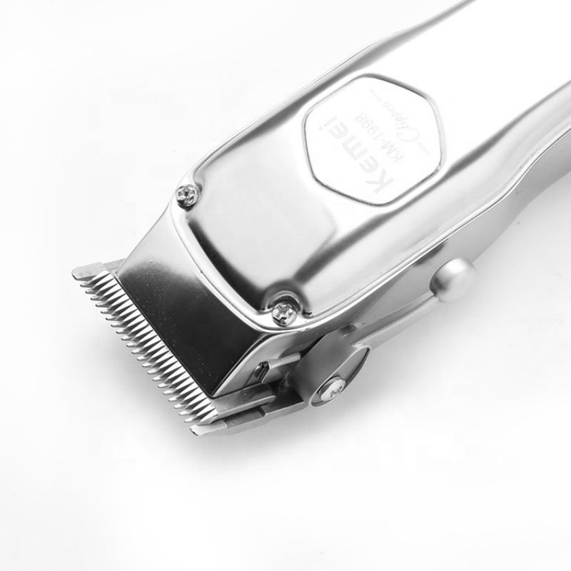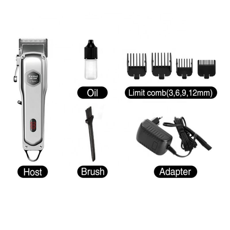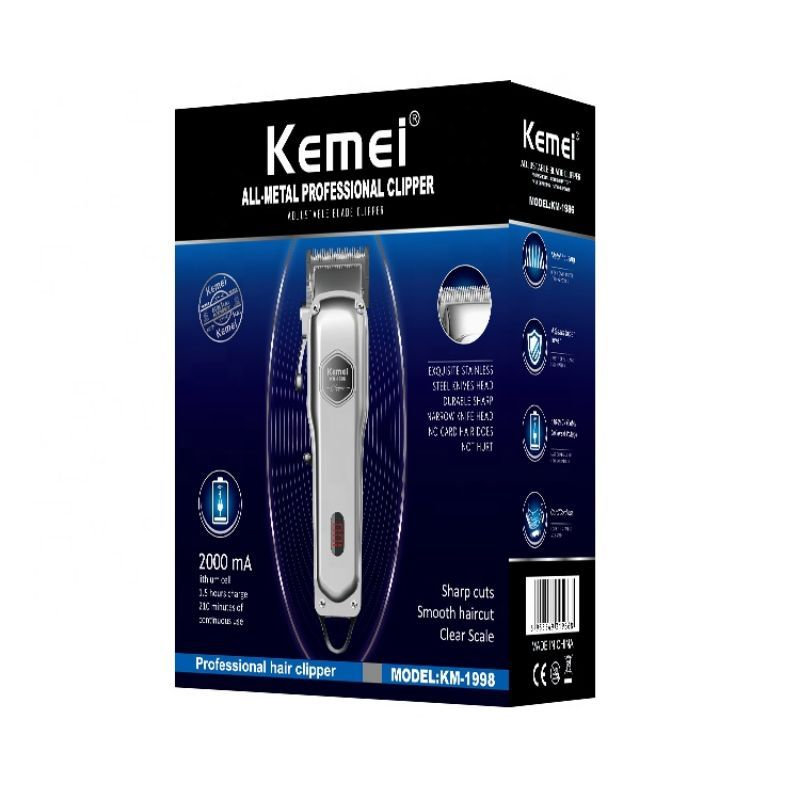 KEMEI MAŠINICA ZA ŠIŠANJE – TRIMER KM-1998, KEMEI je dobro poznat brend u Kini, prvenstveno po kvalitetnim proizvodima a i ova mašinica je jedna od takvih. Zaboravite na odlaske frizeru, plaćanje šišanja i gubljenje vremena. Ova mašinica može zadovoljiti sve vaše zahteve u kućnim uslovima mada je možete koristiti i u profesionalnom ambijentu. Mašinica ima bateriju, podržava bežični rad. Baterija se brzo puni adapterom koji dobijate u pakovanju zajedno sa mašinicom. Pored strujnog adaptera tu je i umetak za šišanje za različitu dužinu kose kao i četkica za održavanje higijene uređaja. Pored osnovne namene šišanja, mašinica je sasvim solidno upotrebljiva i za telo., Karakteristike: