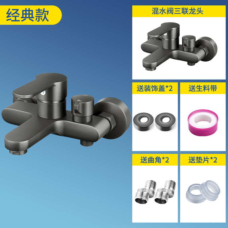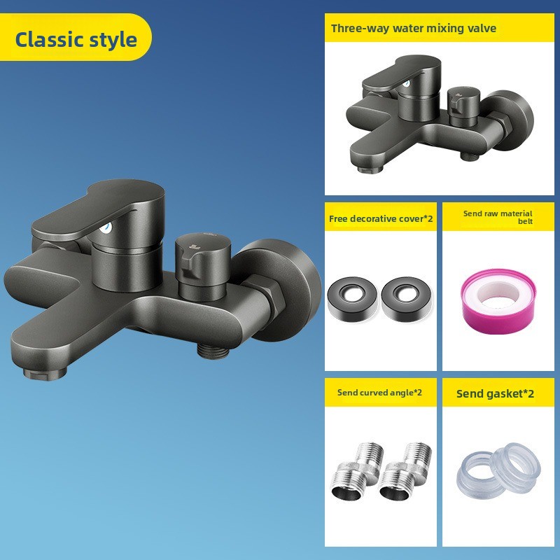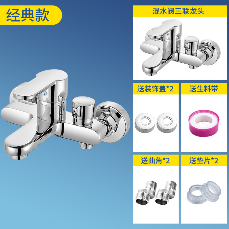 Mesingana slavina za tuš, set slavina za kadu | Trostruka funkcija kontrola tople i hladne vode sa bočnim prekidačem, čisti bakar, EU navojni konektor