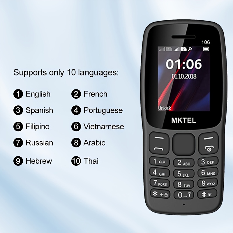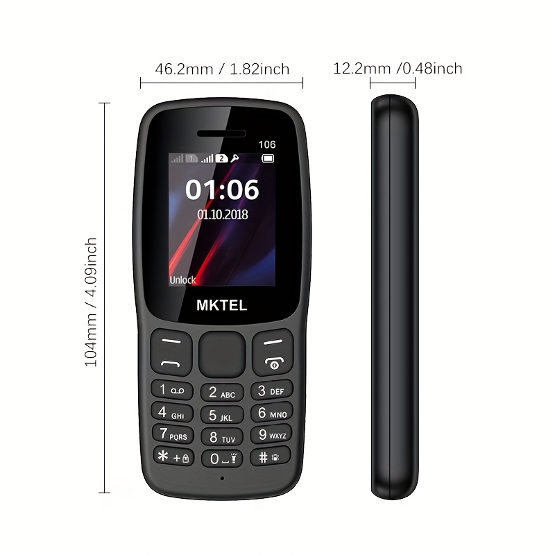 MKTEL 106-2G Klasični mobilni telefon za starije osobe u obliku šipke | Dual SIM Dual Standby, veliki ekran od 1,77 inča, dug vek trajanja baterije, pogodan za starije osobe, Božićni izbor, podrška za 10 jezika