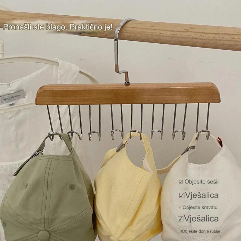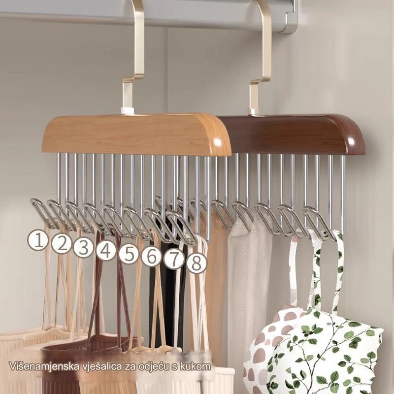 Moderan Držač od Pravog Drveta sa Osam Kukica | Svestrano Skladištenje za Donje Rublje, Kaiševe, Prsluke, Šalove i Čarape