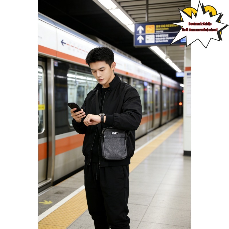 Moderna minimalistička torba preko tela za muškarce, dizajnirana da drži telefone i ostale potrepštine u ležnom i organizovanom stilu