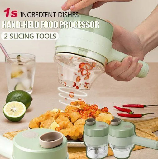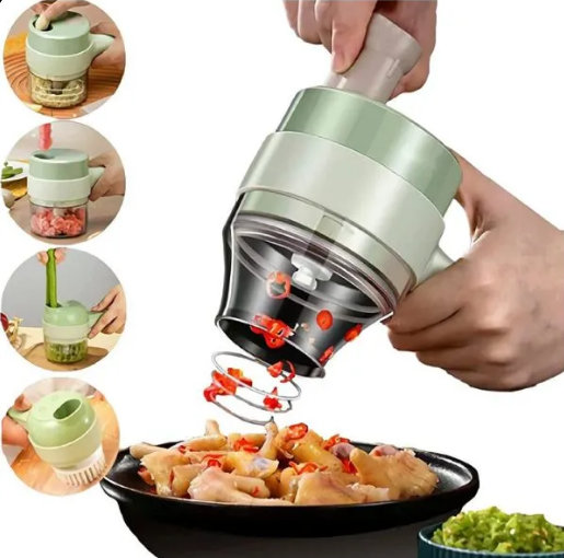 Multifunkcionalni 4 u 1 set za rezanje voća , povrća, električna četka ili mašina za mljevenje mesa. Sa samo jednim proizvodom možete da radite na više različitih načina.