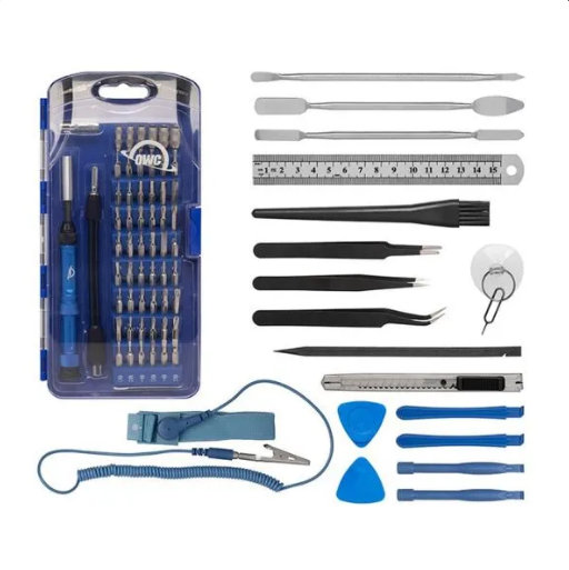 Set uključuje 58 izmenljivih bitova, nož za pomoć, antistatičku traku za zglob, antistatičku pincetu, iglu za izbacivanje SIM kartice, LCD usisnu čašu, trougao, plastične i metalne lopatice, lenjir od nerđajućeg čelika, sredstvo za čišćenje četka plus teleskopska, fleksibilna osovina (podesiva na četiri različite dužine i različite uglove) kako bi se olakšao pristup teško dostupnim zavrtnjima