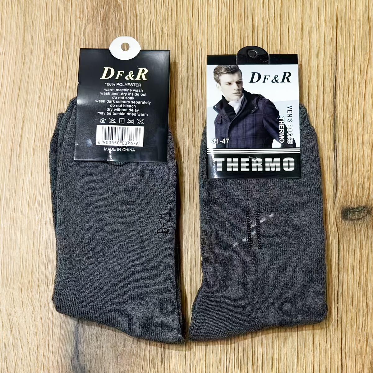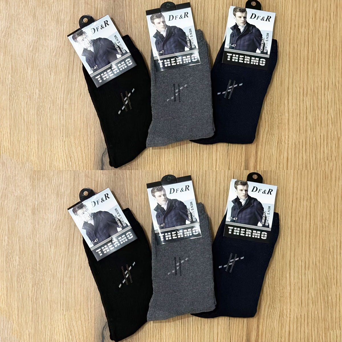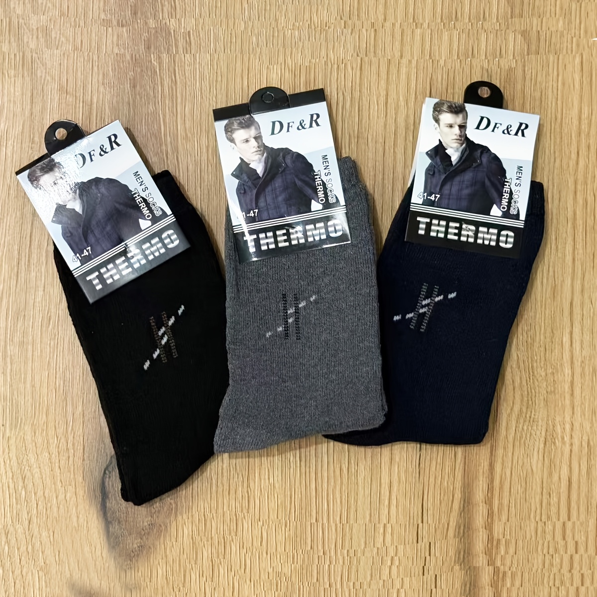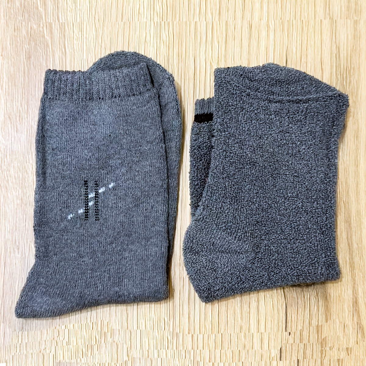 Muške debele jednobojne čarape do pola lista za jesen i zimu, sa duplim iglama i vertikalnim prugama za toplinu.