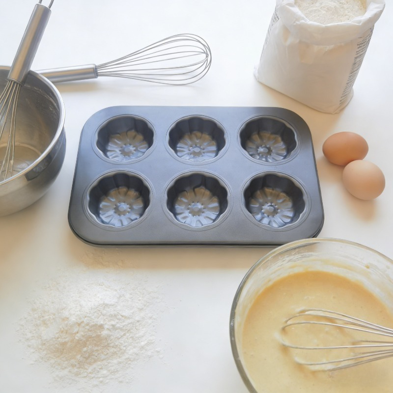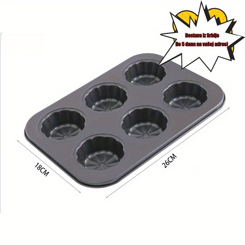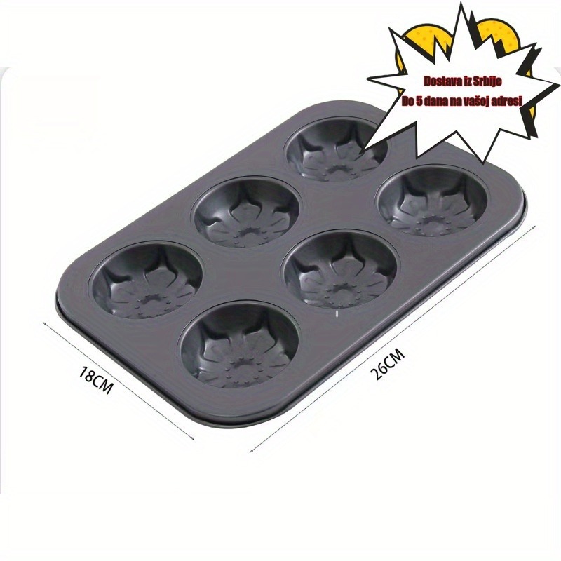 Neprijanjajuća posuda za pečenje za kremaste krofne sa 6 odvojenih delova, sa dizajnom cveta sa pet latica, idealna za pravljenje kolača u obliku šljive i mafina u obliku cveta, neophodan alat za porodično pečenje