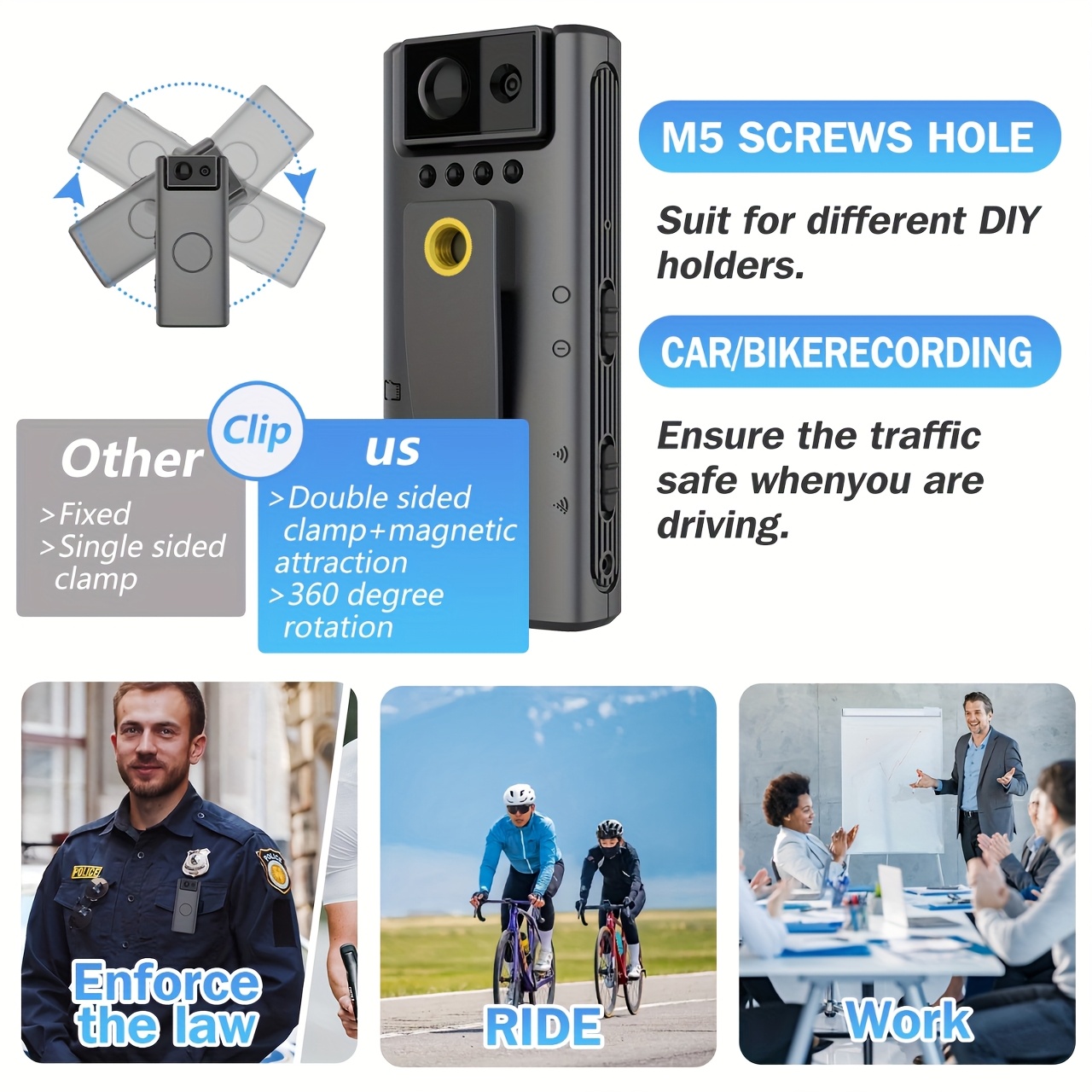 Nosiva akciona kamera snimač od 1000mAh, za praćenje sporta, infracrveni noćni vid, mini bežična kamera sa rotirajućim objektivom, spoljnja kamera, kamerica na klipu, za sastanke, transport, biciklizam i turistiku. SD kartica nije uključena, alatka za dokumentaciju putovanja, naprava za bilježenje tokom prevoza, minijaturna bez žice diktografska oprema,
