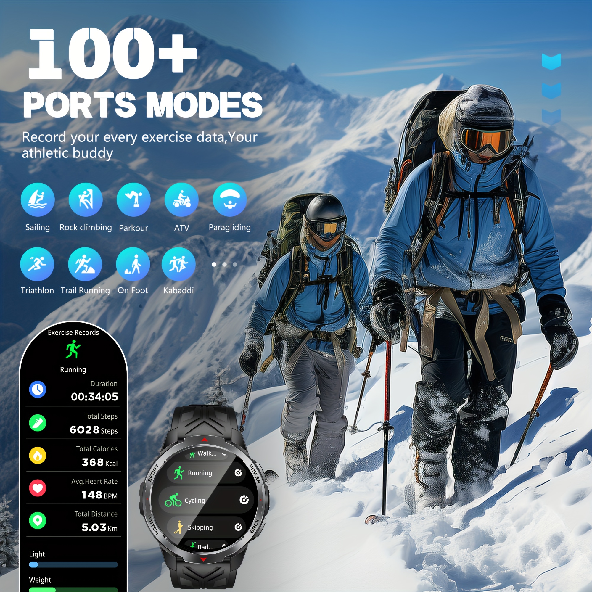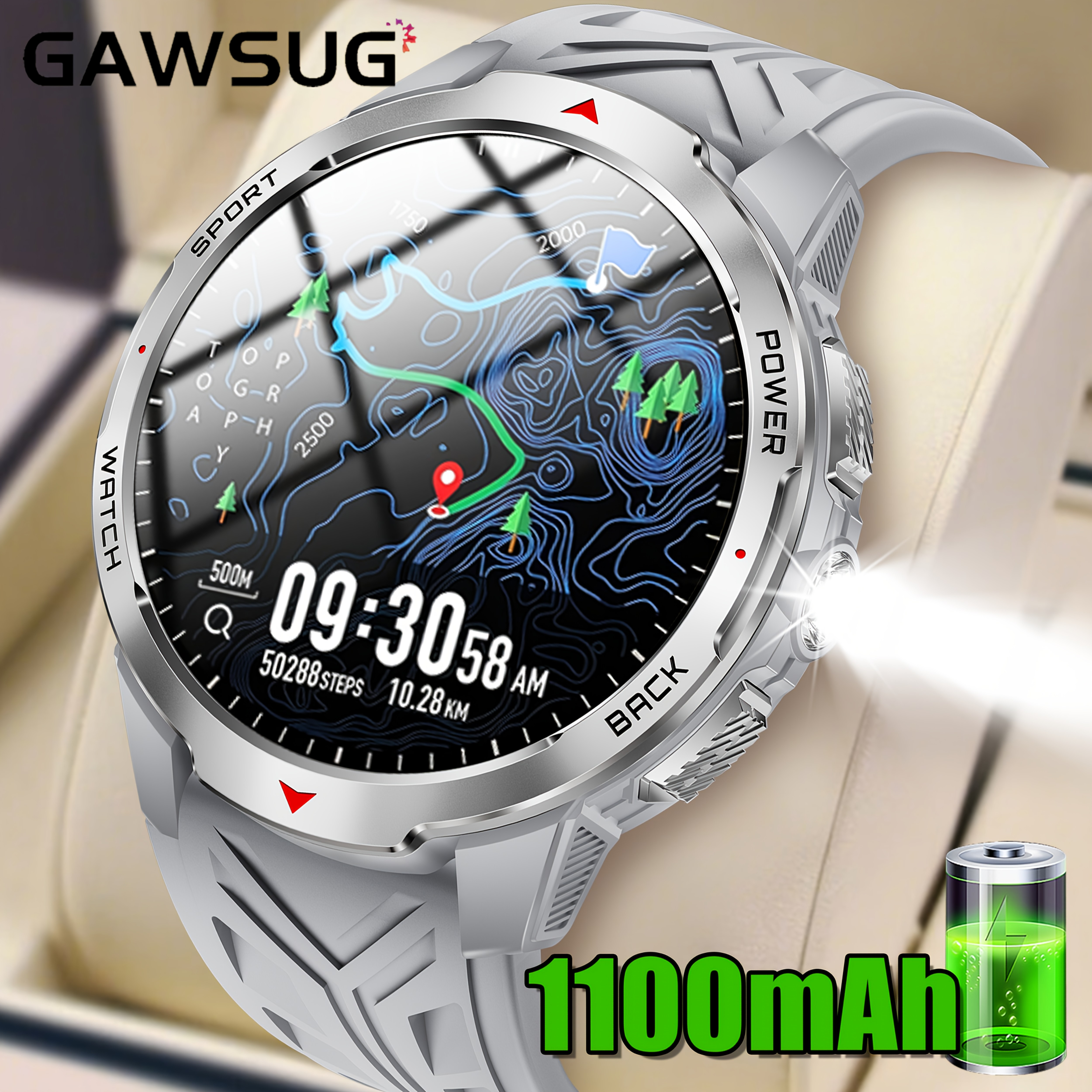 Novi uniseks pametni sat od 1,7 inča, dugotrajna baterija od 1100mAh, LED baterijska lampa, kompas, visok kvalitet, 120+ sportskih modova, štoperica/hronograf, monitor spavanja, pratilac fitnesa za trčanje i vožnju bicikla na otvorenom za iPhone/Android – savršen poklon za Dan zaljubljenih/Božić/Noć