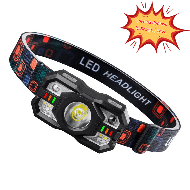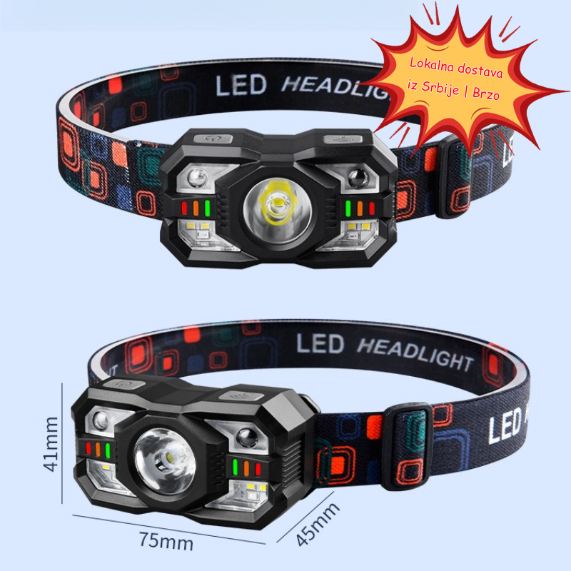 Pametna senzorska čeona lampa sa senzorom pokreta/automatskim uključivanjem, višestrukim svetlom (belo/crveno/zeleno) – bežična čeona lampa za noćni ribolov, kampovanje, hitne slučajeve – (kompatibilna sa -C uređajima)