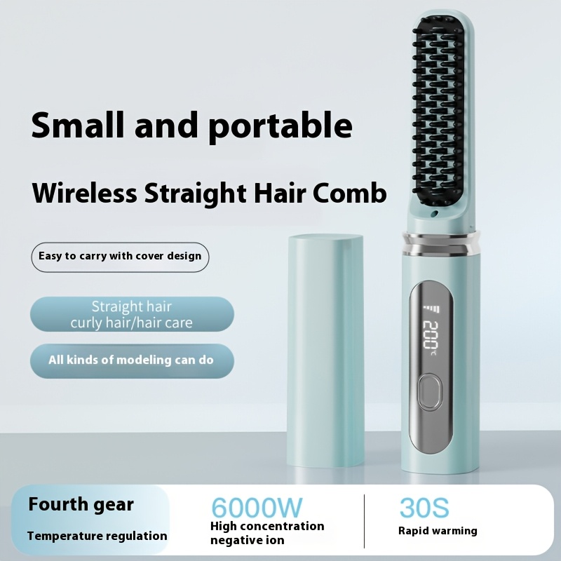 Kućni pegla za kosu sa bežičnim punjenjem i velikom baterijom od 4000Ah dugog trajanja, brzo zagrevanje s 4-brzinskim podešavanjem temperature, automatsko isključivanje nakon 15 minuta, dizajn poklopca koji olakšava nošenje, dvostruka upotreba kao uvijač i češalj za stilizovanje