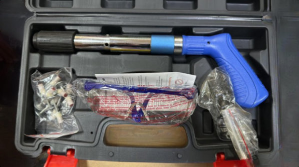 U kompletu dolazi: kofer, pistolj, zastitne naocare, eksere…