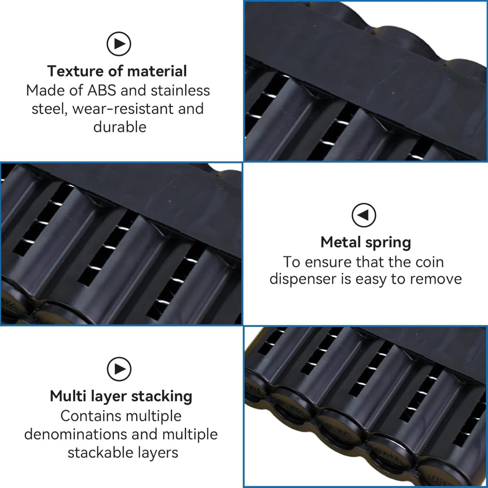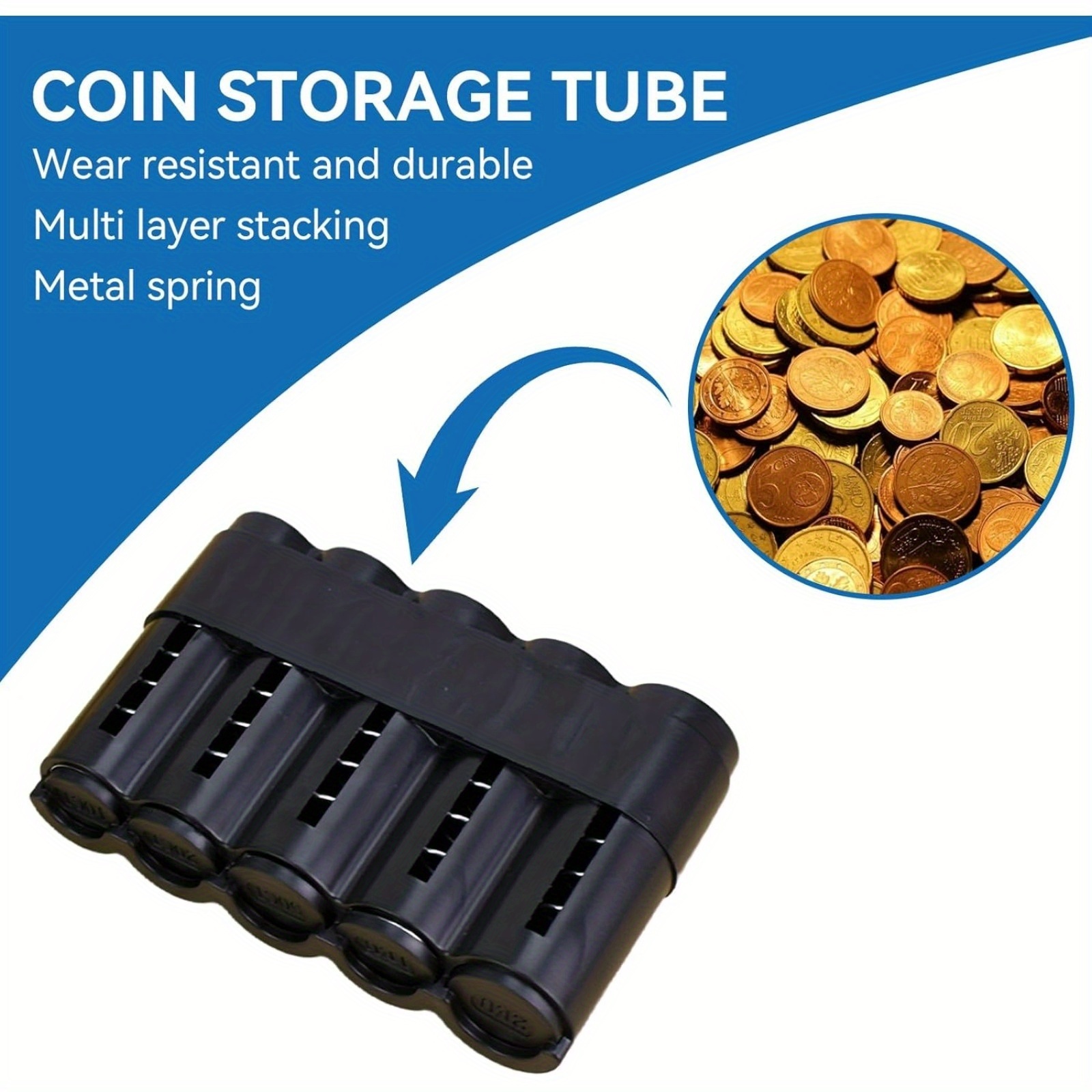 Kompaktno rešenje za skladištenje kovanica sa crnim plastičnim organizatorom sa 5 pregrada, idealno za kuću, kancelariju ili putovanja.