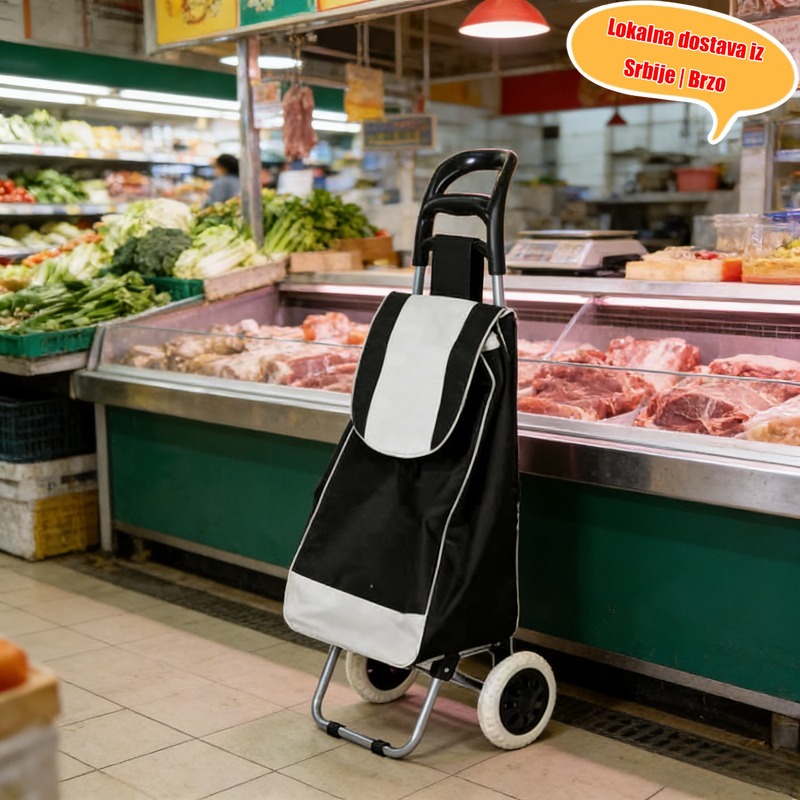 Prenosiva kolica za kupovinu | Sklopiva kolica za namirnice sa torbom | Savršena za supermarket, vešeraj i spoljašnju upotrebu