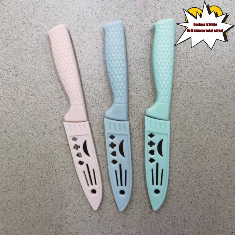 Prenosivi set noževa za voće za domaćinstvo, 1 ili 3 komada, sa zaštitnim poklopcem za sprečavanje posecanja. Ovaj „sve-u-jednom“ nož od nerđajućeg čelika je oštar i izdržljiv, što ga čini neophodnim za kuhinje u studentskim domovima.