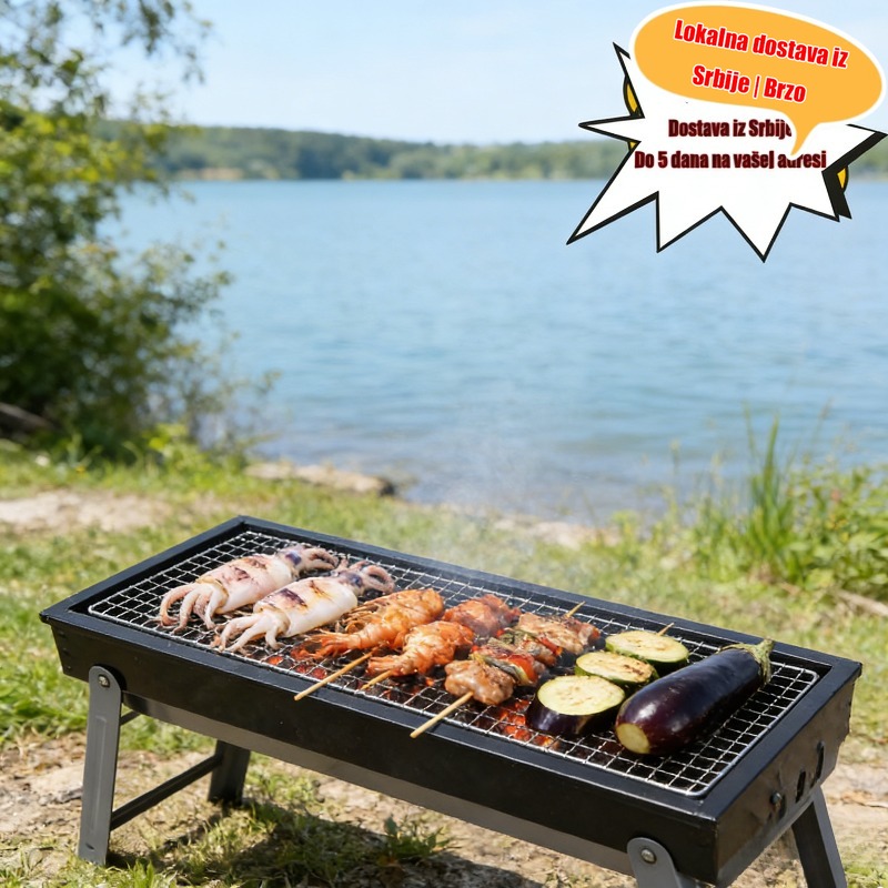 Prenosivi sklopivi roštilj, kućni roštilj na ugalj za vanjsku upotrebu, neophodan za kampovanje, alat za roštiljanje u dvorištu i piknik