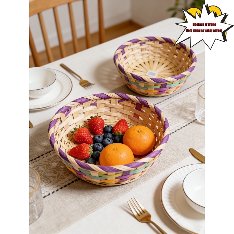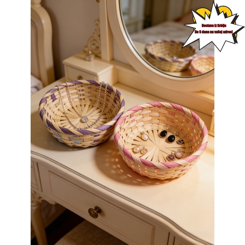 Prirodna pletena korpa od bambusa, ola, ručno rađena, šarena korpa za odlaganje, kućna organizacija, dekorativna korpa za odlaganje za kuhinjski sto, za kućno skladištenje, korpe za police