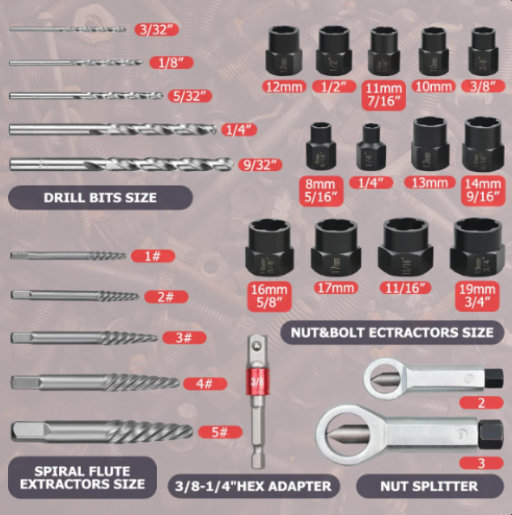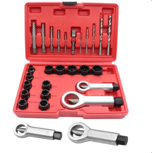 26PCS set za uklanjanje vijaka i matica posebno je dizajniran za uklanjanje oštećenih, zarđalih ili ogoljenih vijaka, zatvarača, metalne slavine za vodu i cevi za vodu, itd.