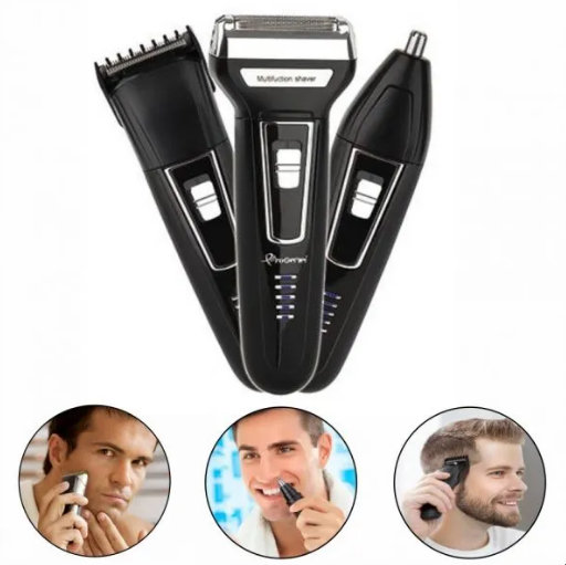 Trimer za šišanje i trimovanje brade i dlaka na telu, kosi…, 2 promenljive glave za brijanje i 1 trimer za dlacice u nosu i usima