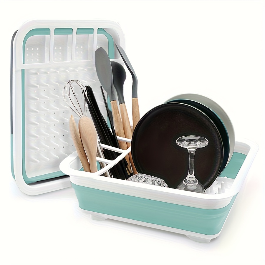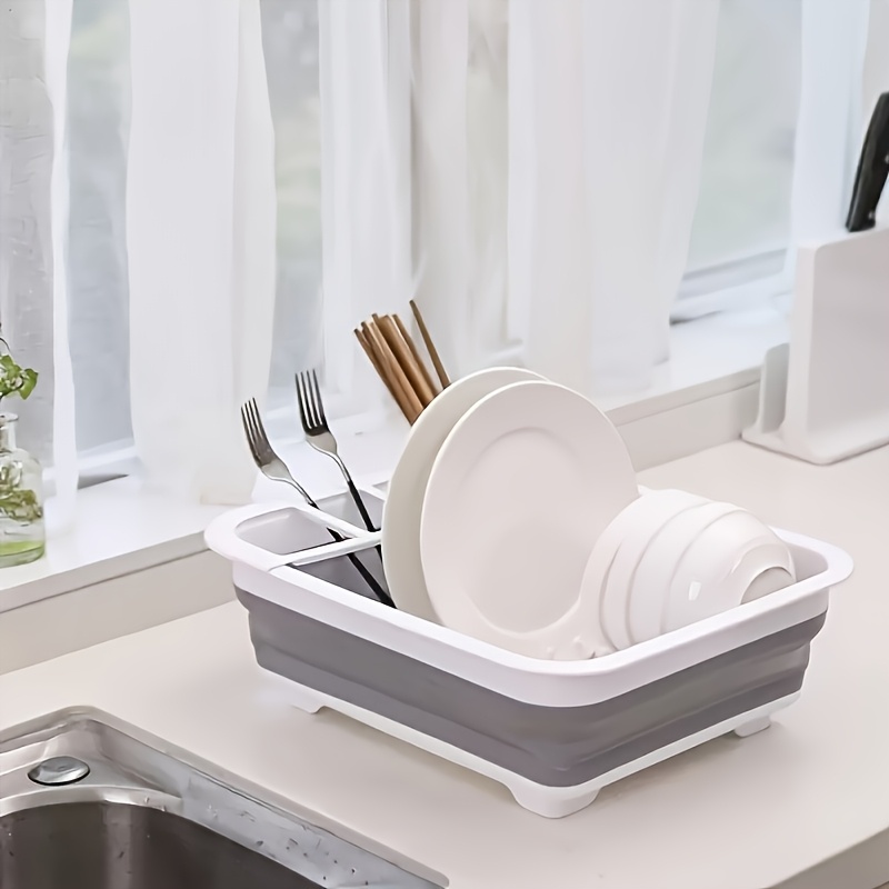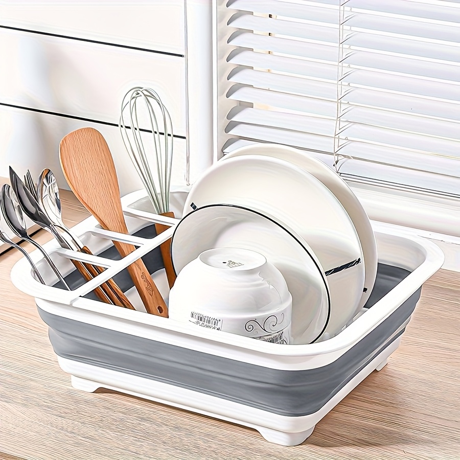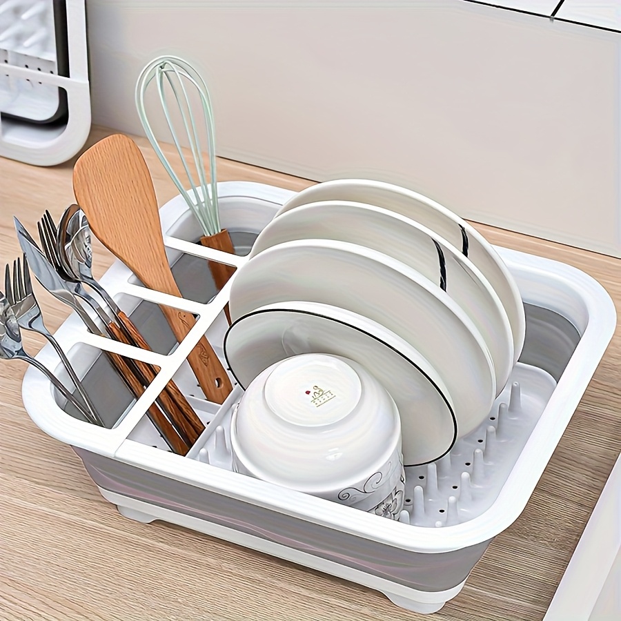 Prostrani sklopivi stalak za oceđivanje i skladištenje / Svestrani organizator za pribor sa više pregrada / Čvrsti kuhinjski organizator za radnu površinu – Multifunkcionalni stalak za odlaganje tanjira, idealan za posuđe i tanjire od nerđajućeg čelika