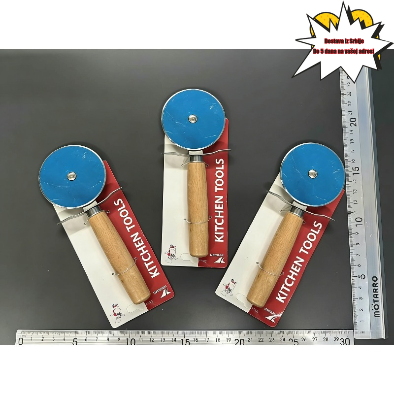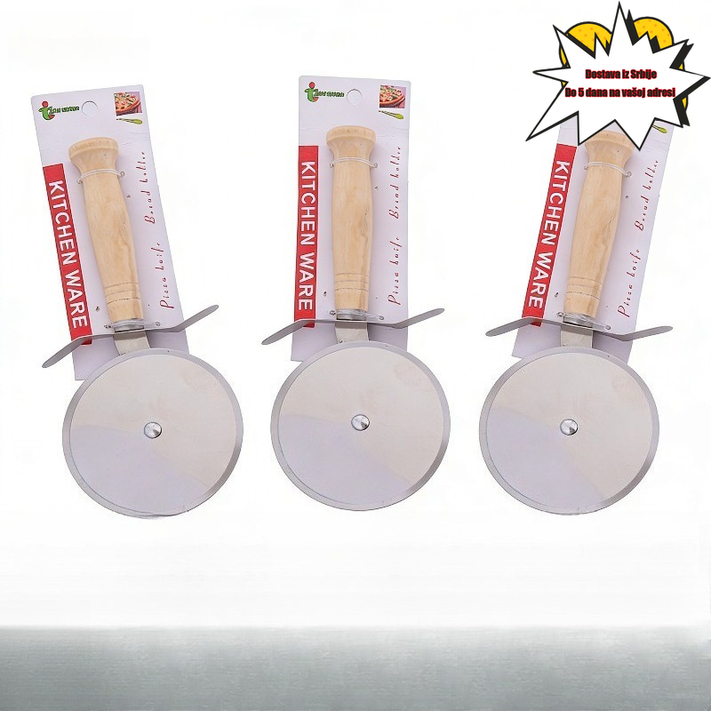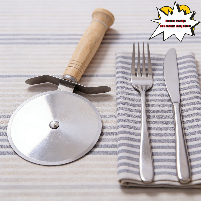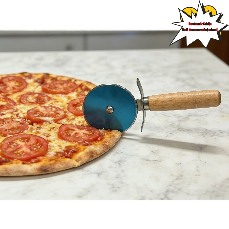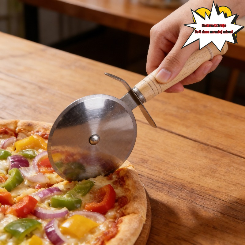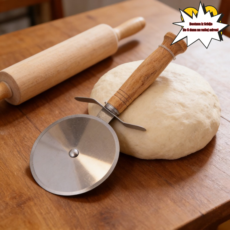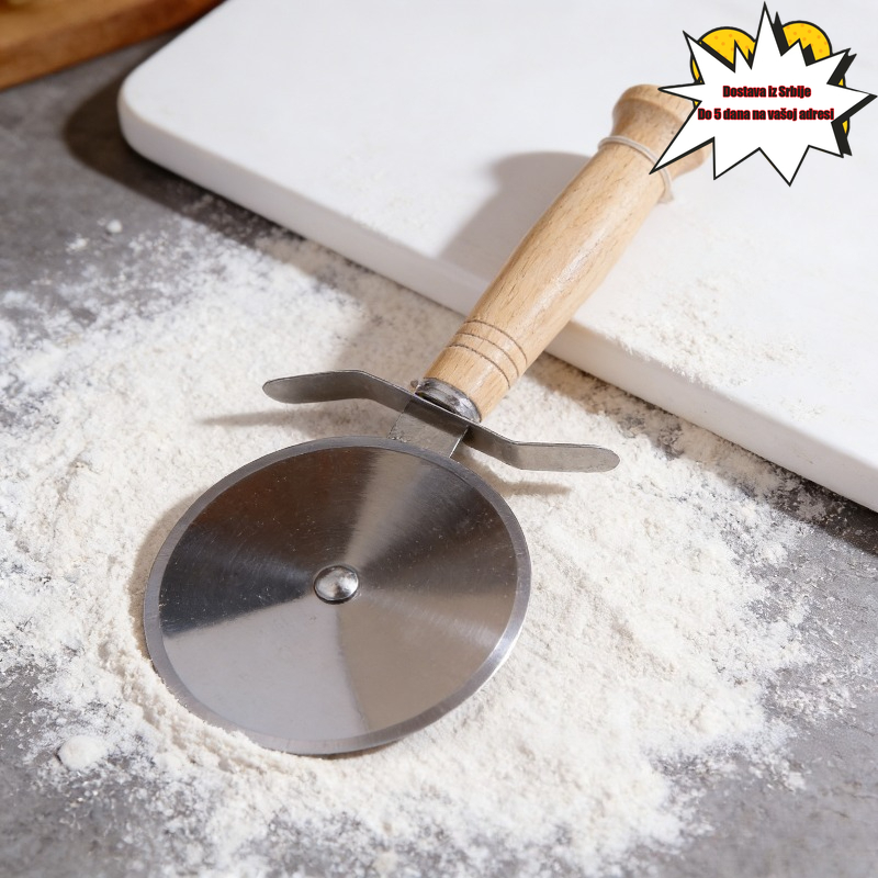 Rezač za picu od nerđajućeg čelika sa drvenom drškom, sekač za testo za pitu, nož za sečenje sa jednim točkom za pečenje
