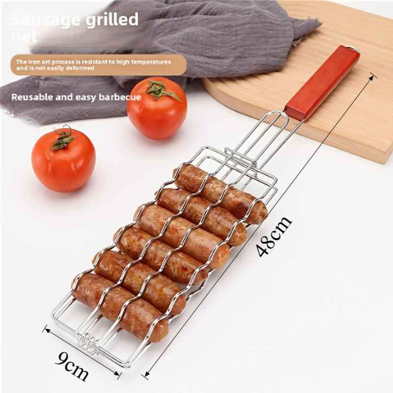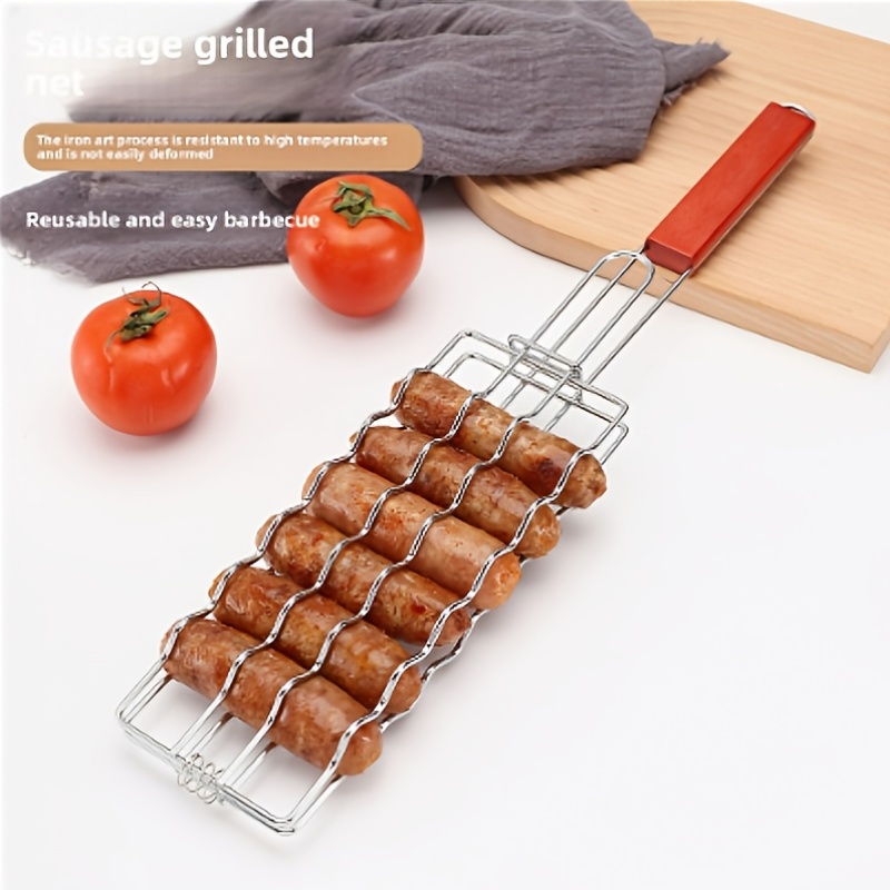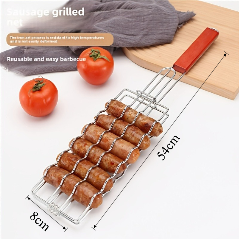 Rostilj za kobasice od nerdajuceg celika sa drvenom drskom