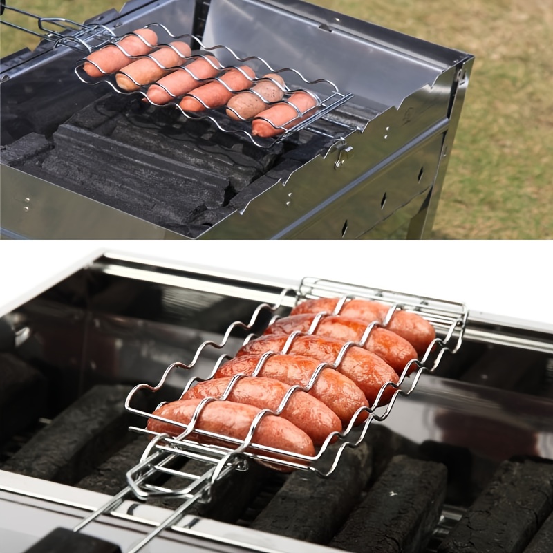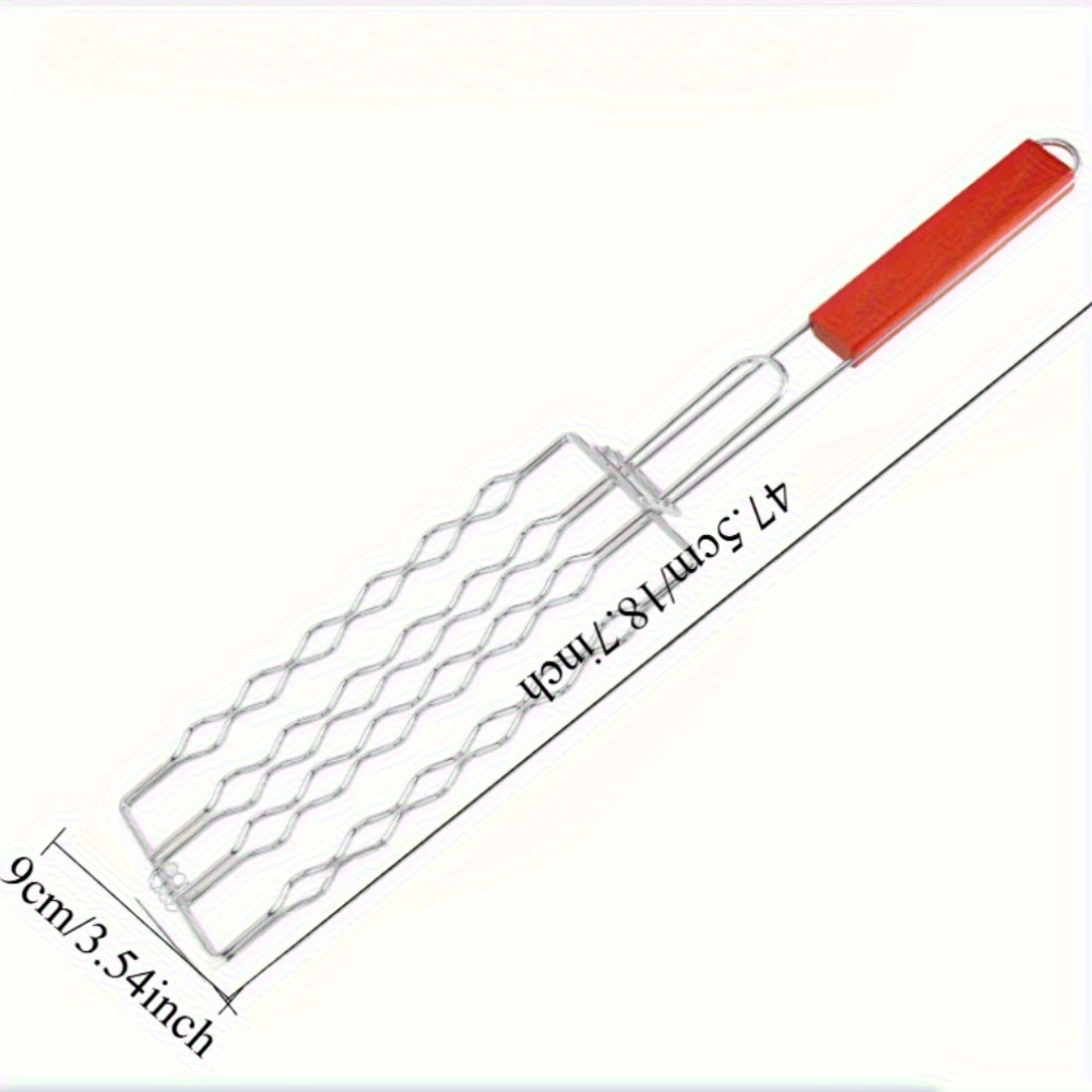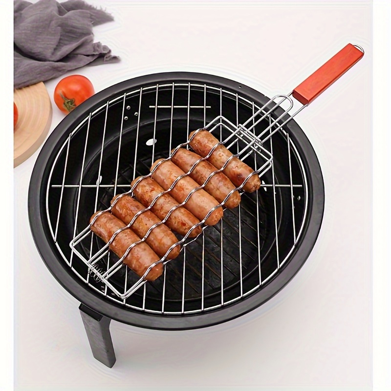 Roštilj za kobasice od nerđajućeg čelika sa drvenom drškom – Dizajniran da bude neprijanjajući i lak za oslobađanje, sa čvrstom metalnom konstrukcijom idealan za kampovanje na otvorenom i roštiljanje, savršen za pečenje kobasica, za kuvanje u kampovanju
