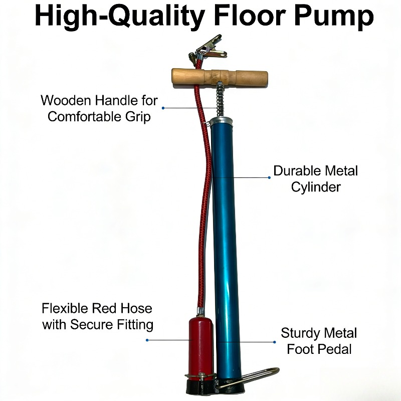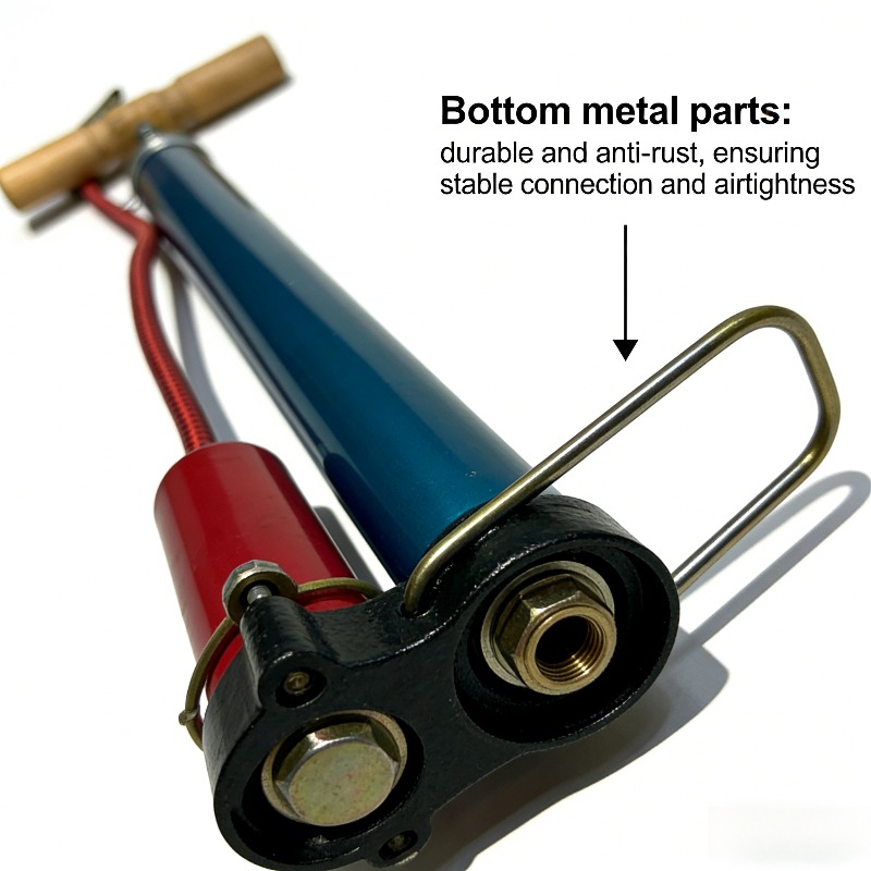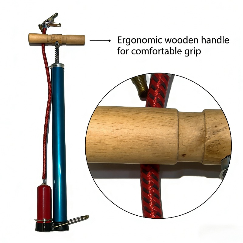 Ručna pumpa visokog pritiska sa crvenim booster cilindrom, prenosivi inflator sa drvenom drškom za bicikle, automobile i opremu na naduvavanje