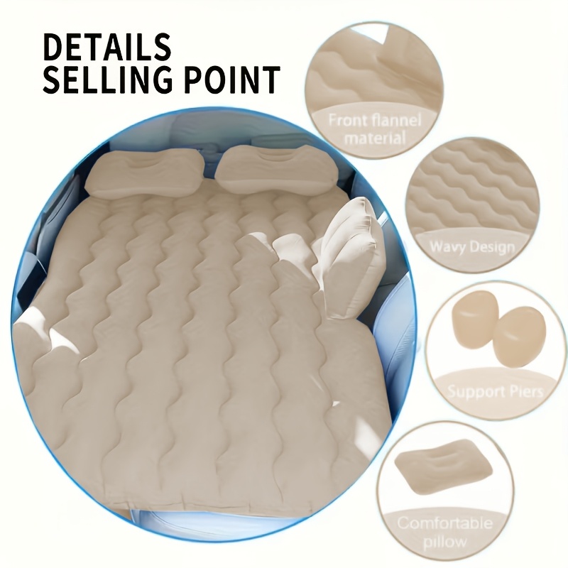 RV Dušek na Naduvavanje | Bež, sa Podrškom, Plišana Prednja Strana, Pogodan za Sedane, SUV vozila, Sklopiv i Ravan za Porodična Putovanja i Kampovanje na Otvorenom