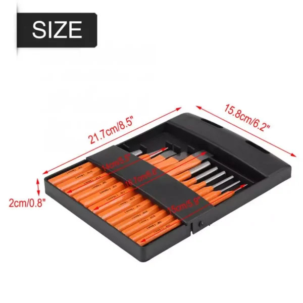 Set dleta, centralnih i konusnih uboda, 12 kom. Dizajniran za rezanje, bušenje i lomljenje tvrdih materijala.