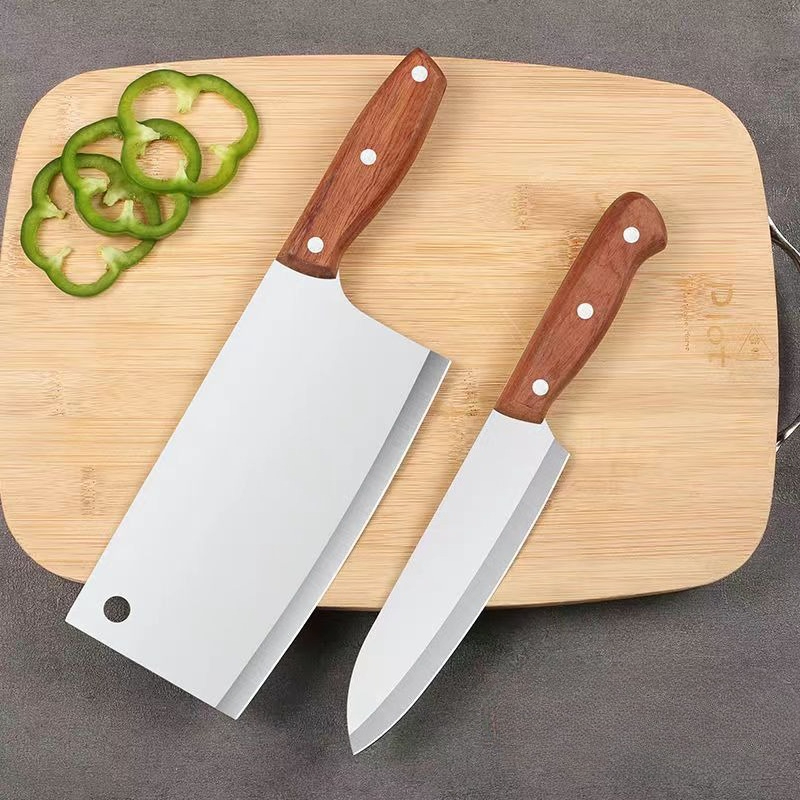 Set od 2 komada kvalitetnog kuvarskog noža, od nerđajućeg čelika, za kućnu upotrebu, za korišćenje u rekama i jezerima, za ulične prodavce, pokloni, za seckanje mesa (2 komada), sečenje kriški povrća, kralj noževa za dud