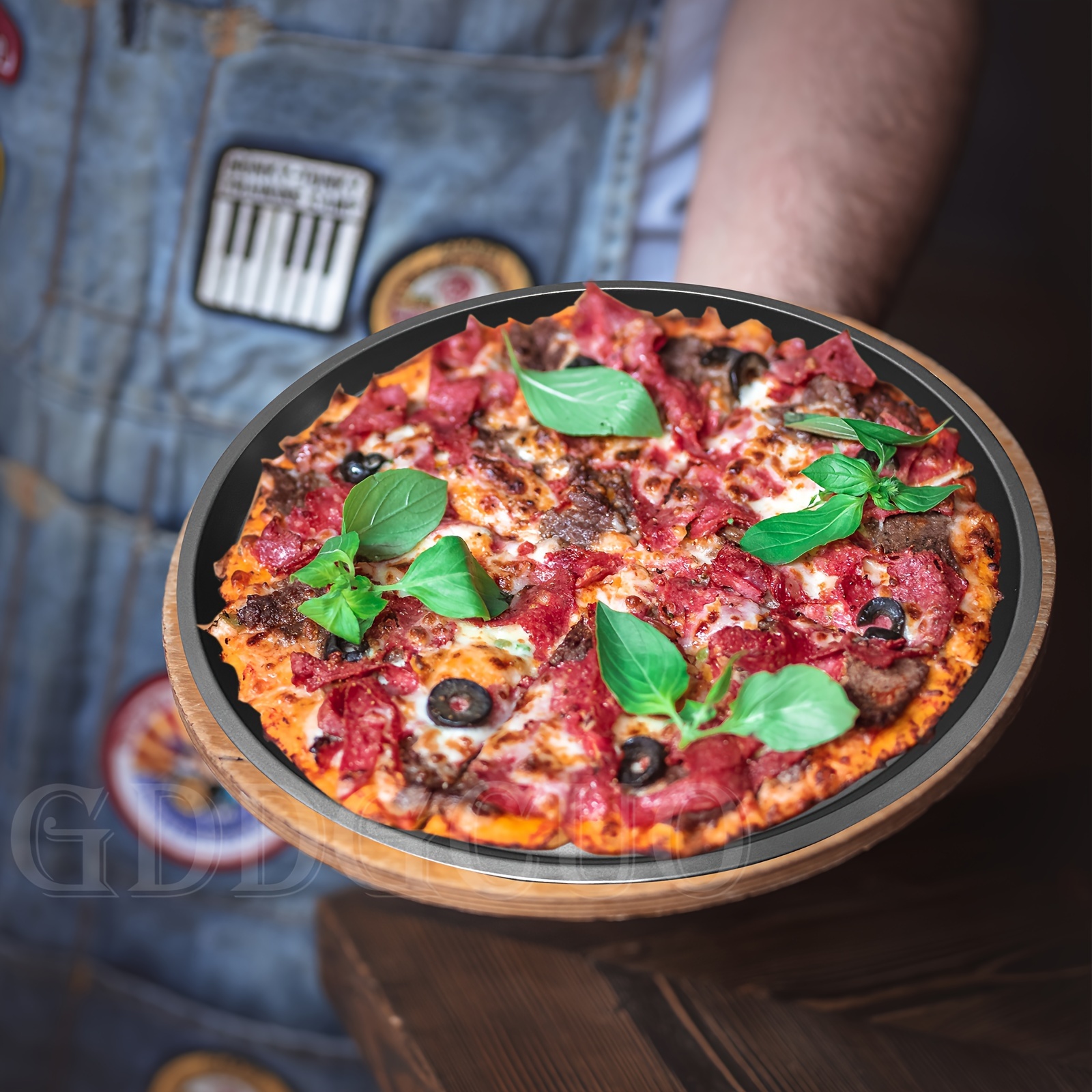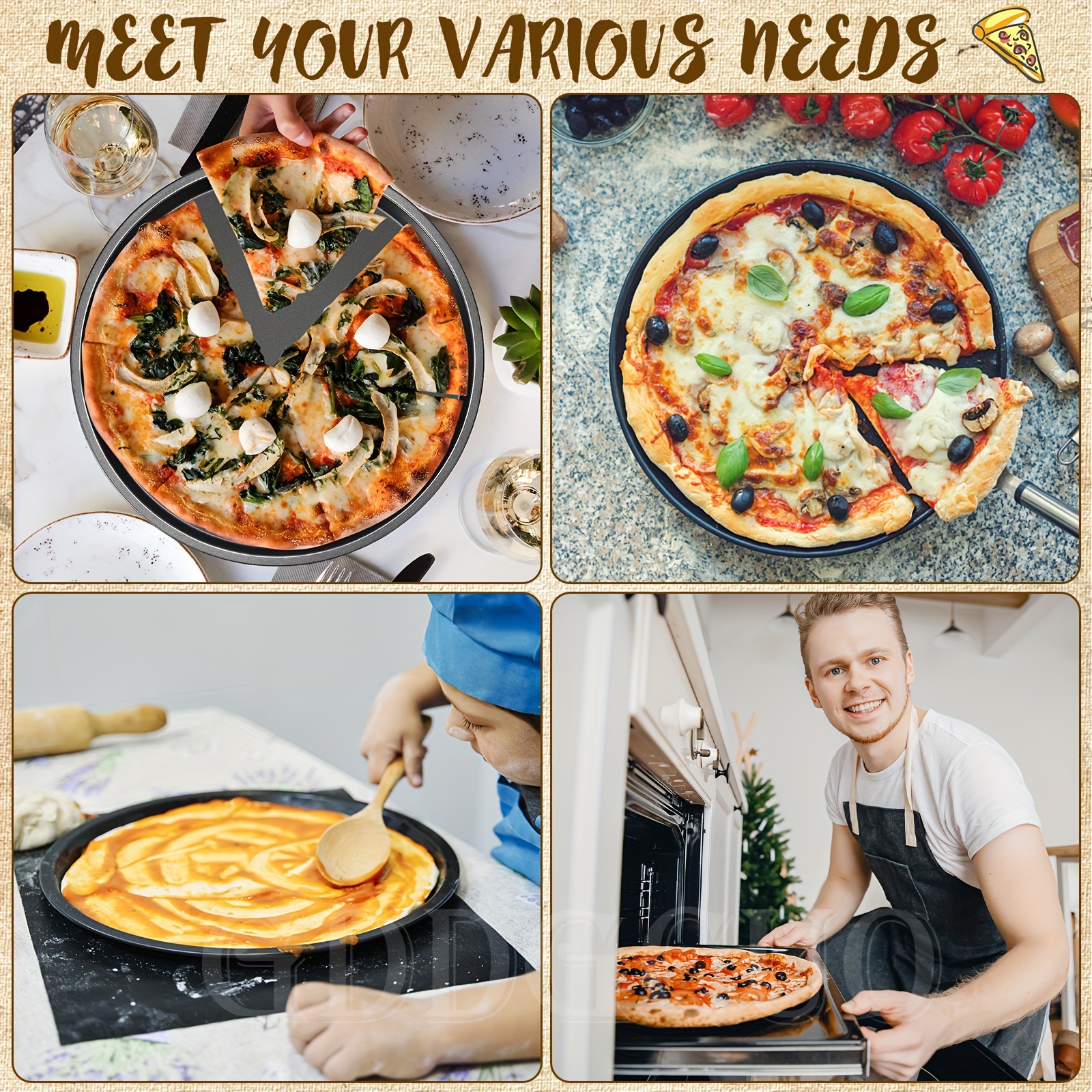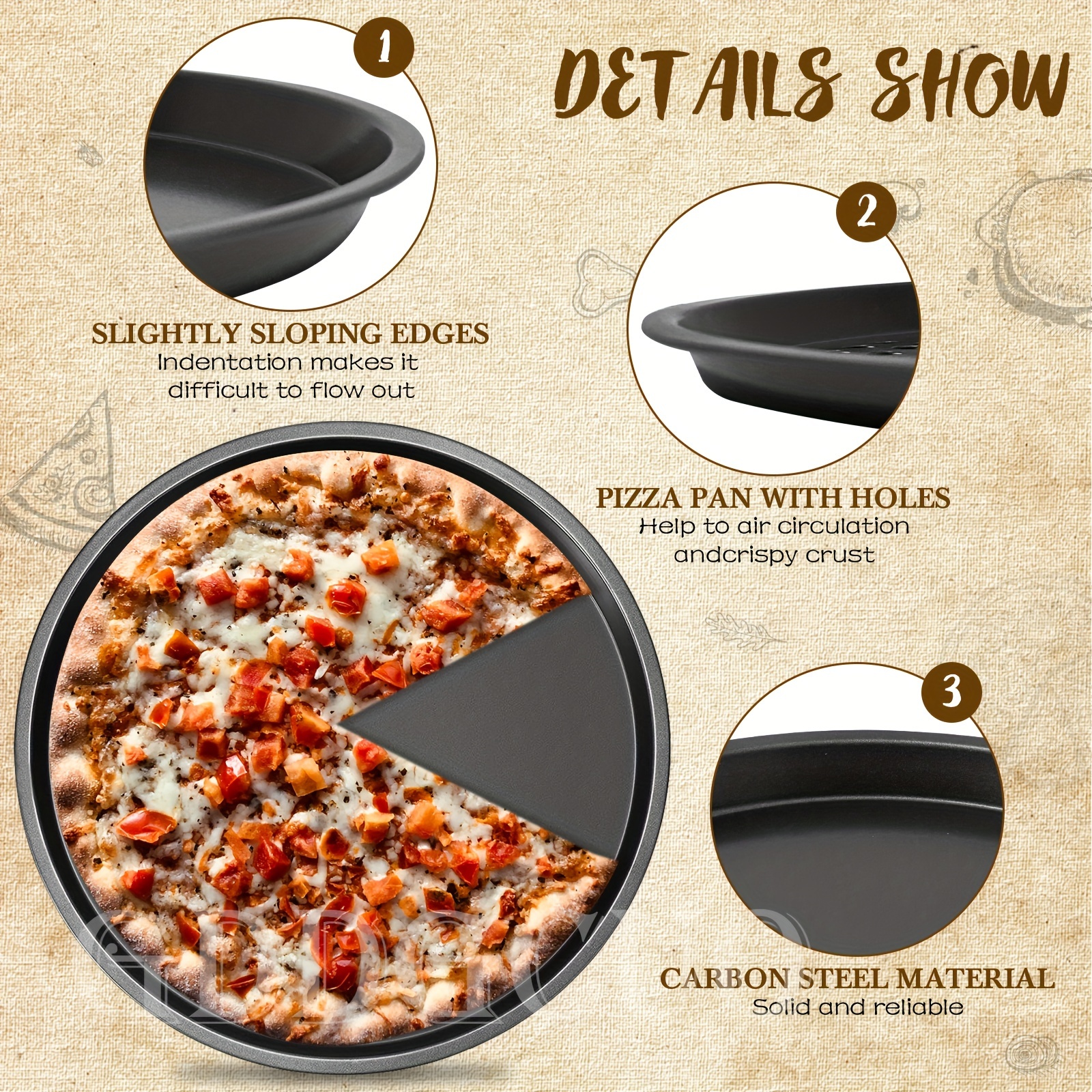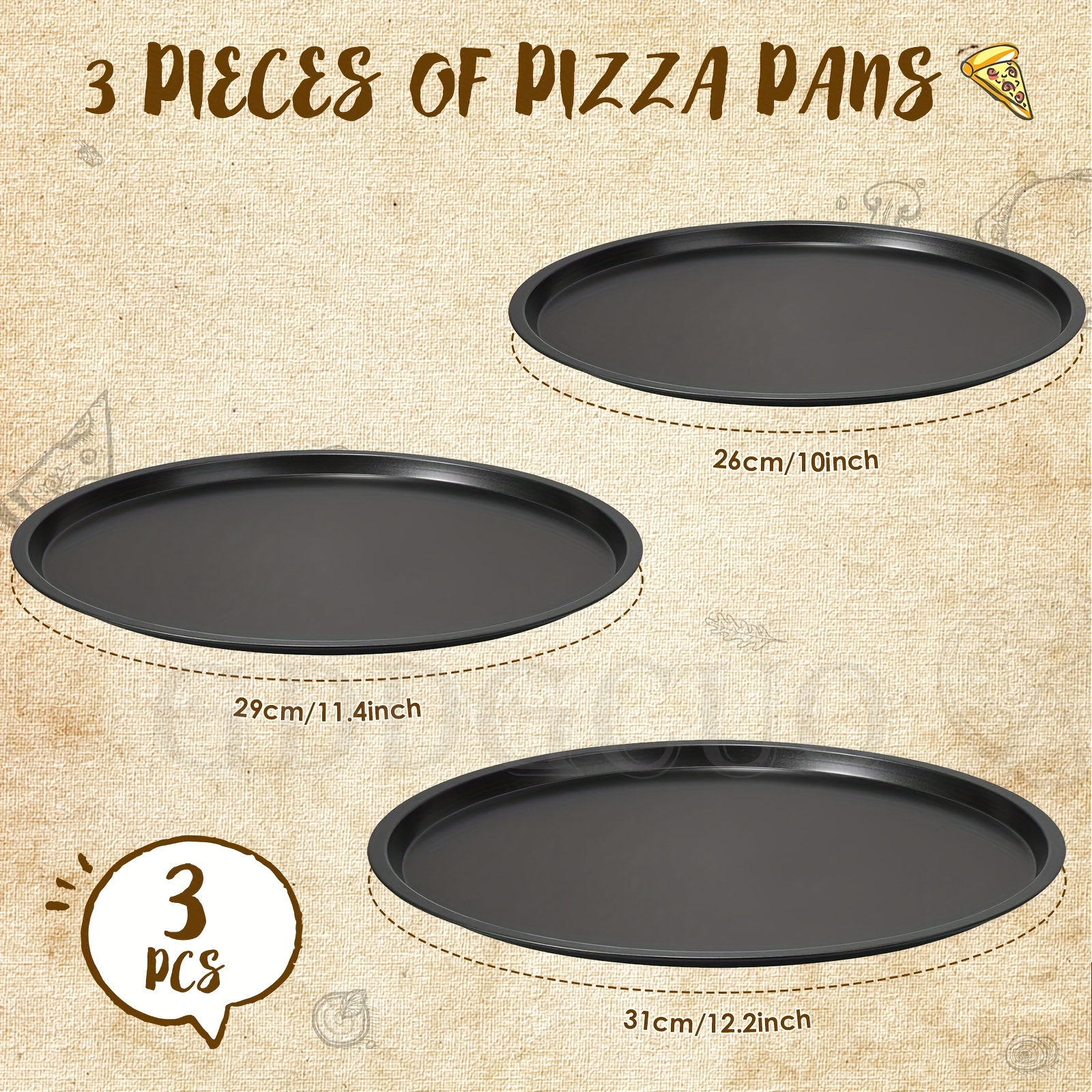 Set od 3, Ole Tepsije za Picu od Ugljeničnog Čelika | Nelepljive, Pogodne za Rernu, Idealne za Zamrznute i Kućne Pice, Tamno Siva Boja