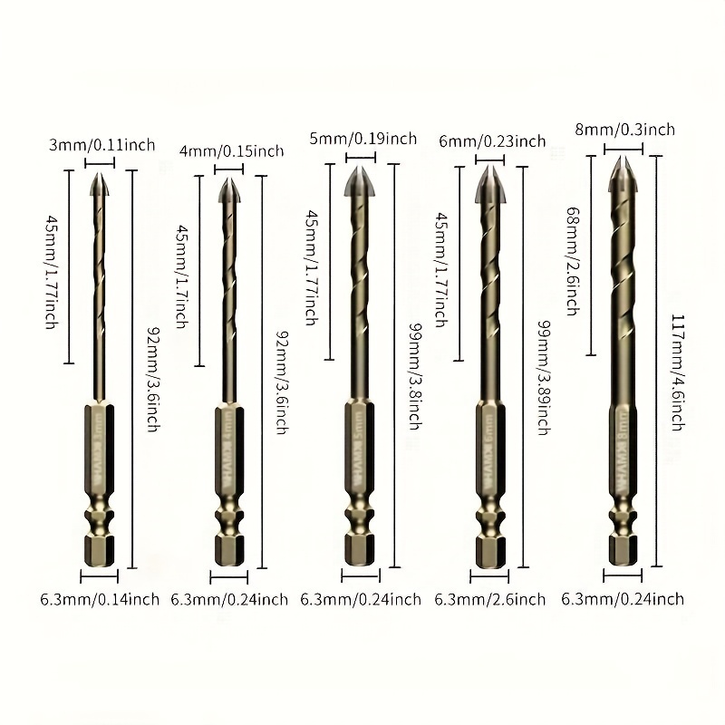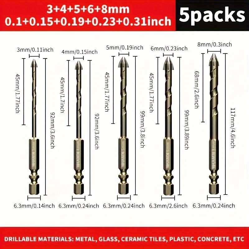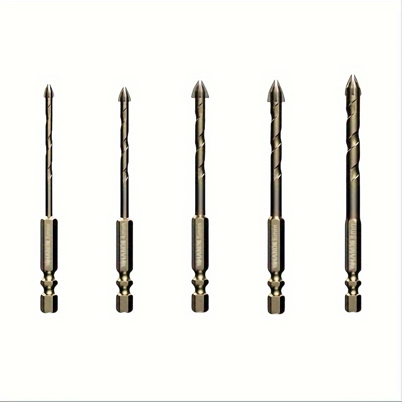 Set od 5 komada teških svrdla od volfram karbida za pločice (3mm, 4mm, 6mm, 8mm, 12mm) – Krstasti heksagonalni svrdla za staklo, beton, keramiku, pločice i precizne čiste rezove – Profesionalna i DIY upotreba