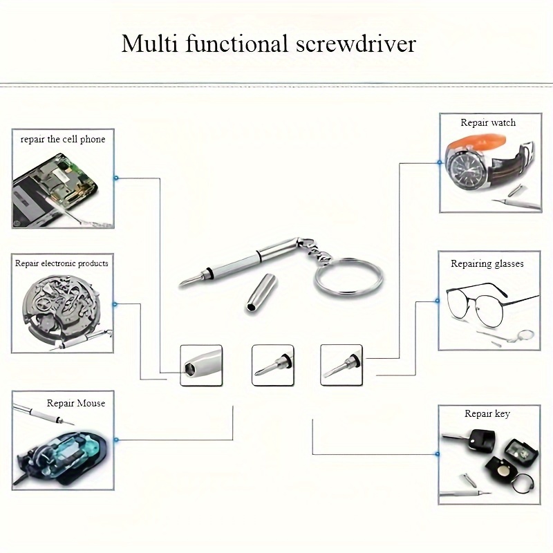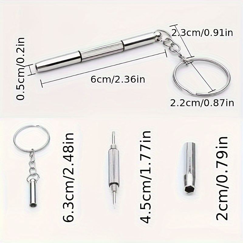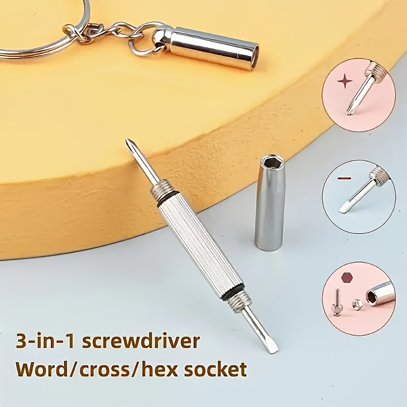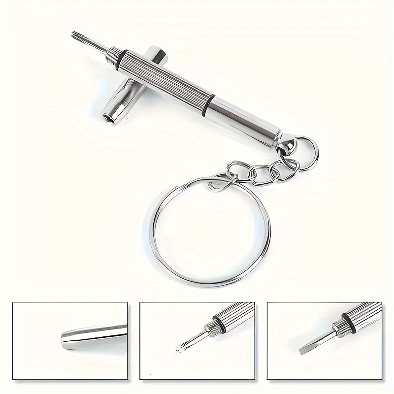 Višenamenski dizajn: Ovaj mini odvijač 3-u-1 dolazi sa Philips, ravnim i preciznim vrhovima, što ga čini idealnim za popravku naočara, satova i malih elektronskih uređaja. Praktična veličina: Kompaktni dizajn za privezak olakšava nošenje za brze popravke u bilo kojem trenutku. Izdržljiva konstrukcija: Napravljen od visokokvalitetnog nerđajućeg čelika, obezbeđuje dugotrajne performanse i pouzdanost. Višenamenski: Savršen za popravku naočara, podešavanje narukvica satova, zatezanje malih šrafova na elektronskim uređajima i održavanje nakita. Precizan dizajn: Odvijač sa finim vrhom je posebno dizajniran za preciznu kontrolu nad malim šrafovima i delikatnim komponentama.