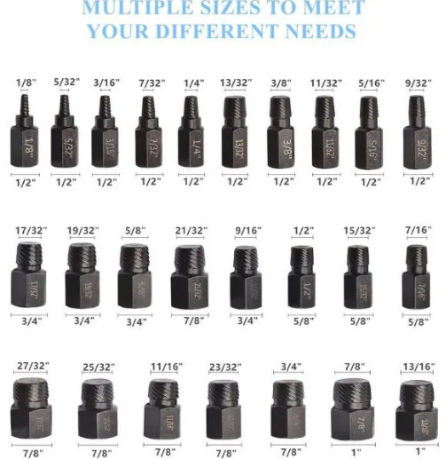 Napravljen od visokokvalitetnog visoko-ugljeničnog čelika (hrom-molibden čelik) je idealan alat za uklanjanje slomljenih šrafova, zavrtnja, klinova, fitinga, navojnih cevi i klinova