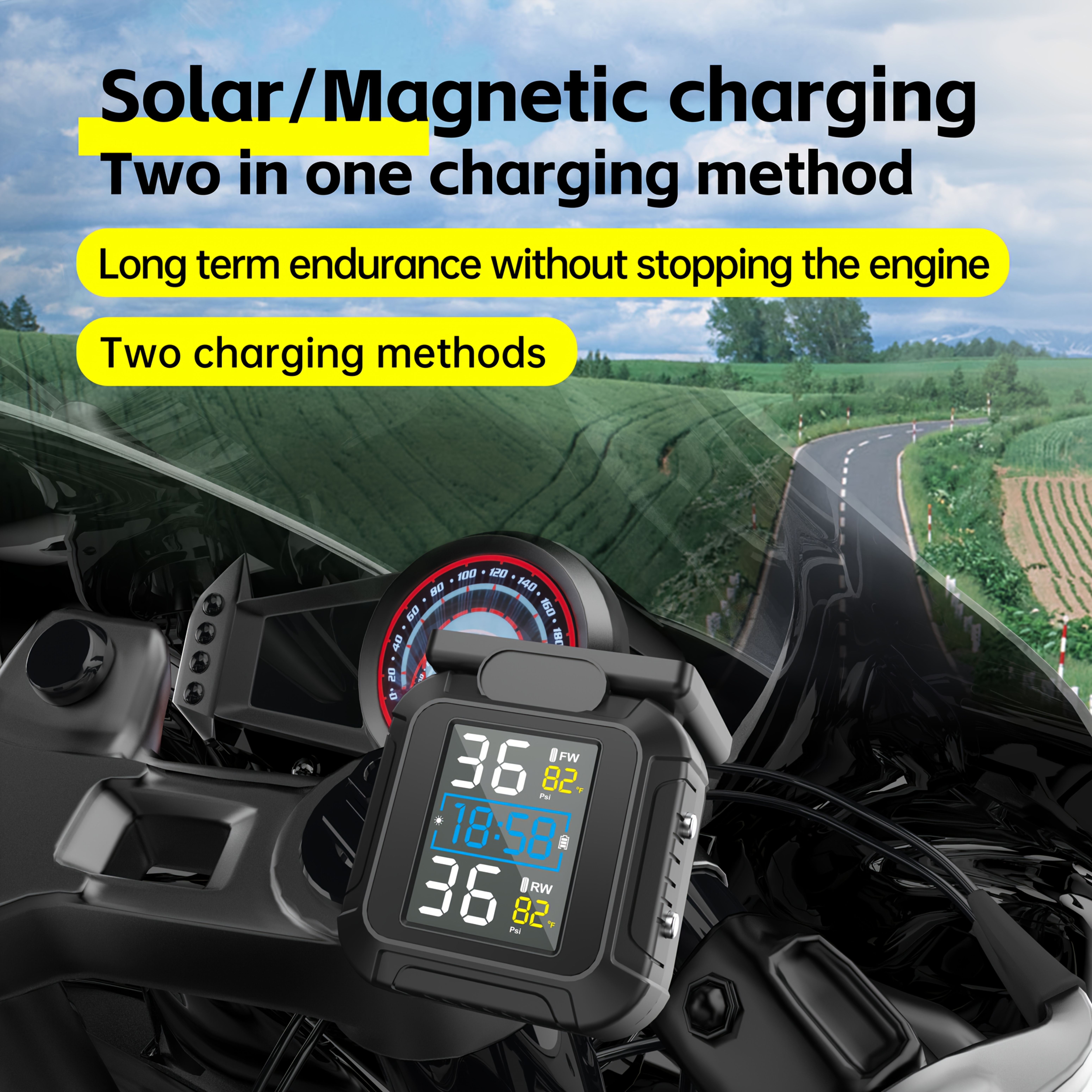 Sistem za praćenje pritiska u gumama motocikla TPMS sa solarnim i magnetnim punjenjem