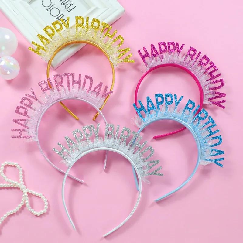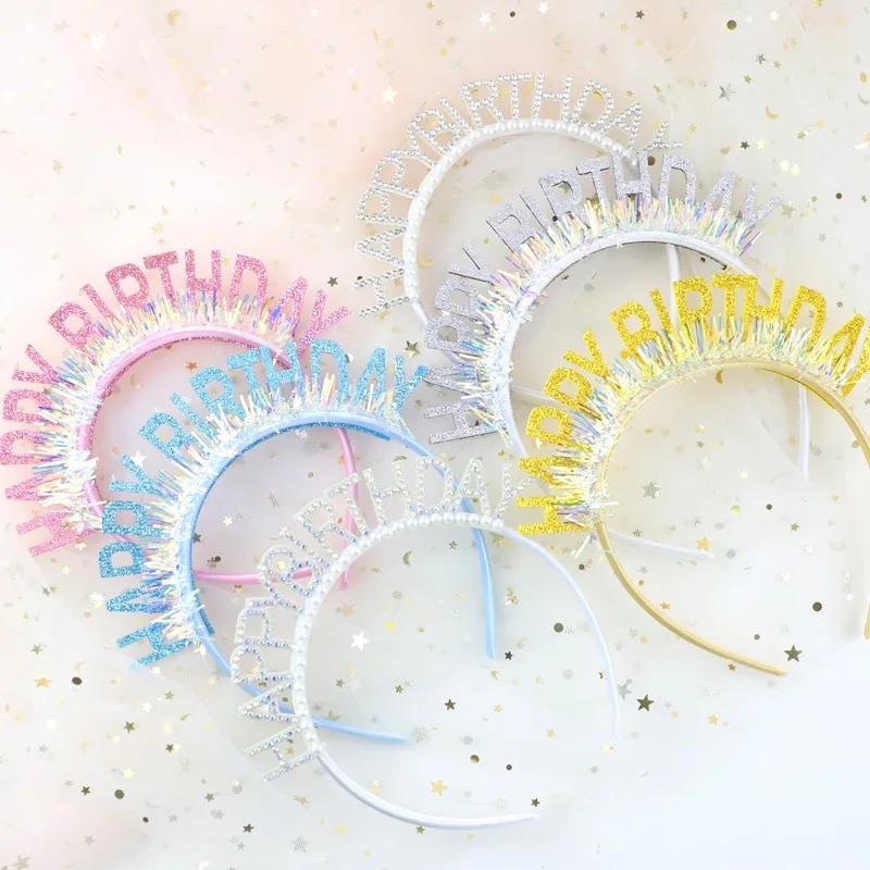 Sjajna traka za glavu sa šljokicama za rođendan bez olova – Srećan rođendan šešir za zabave, ručno pranje za rođendanske zabave i kostime (&)