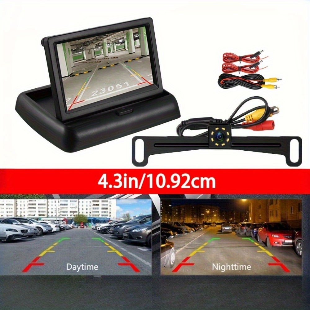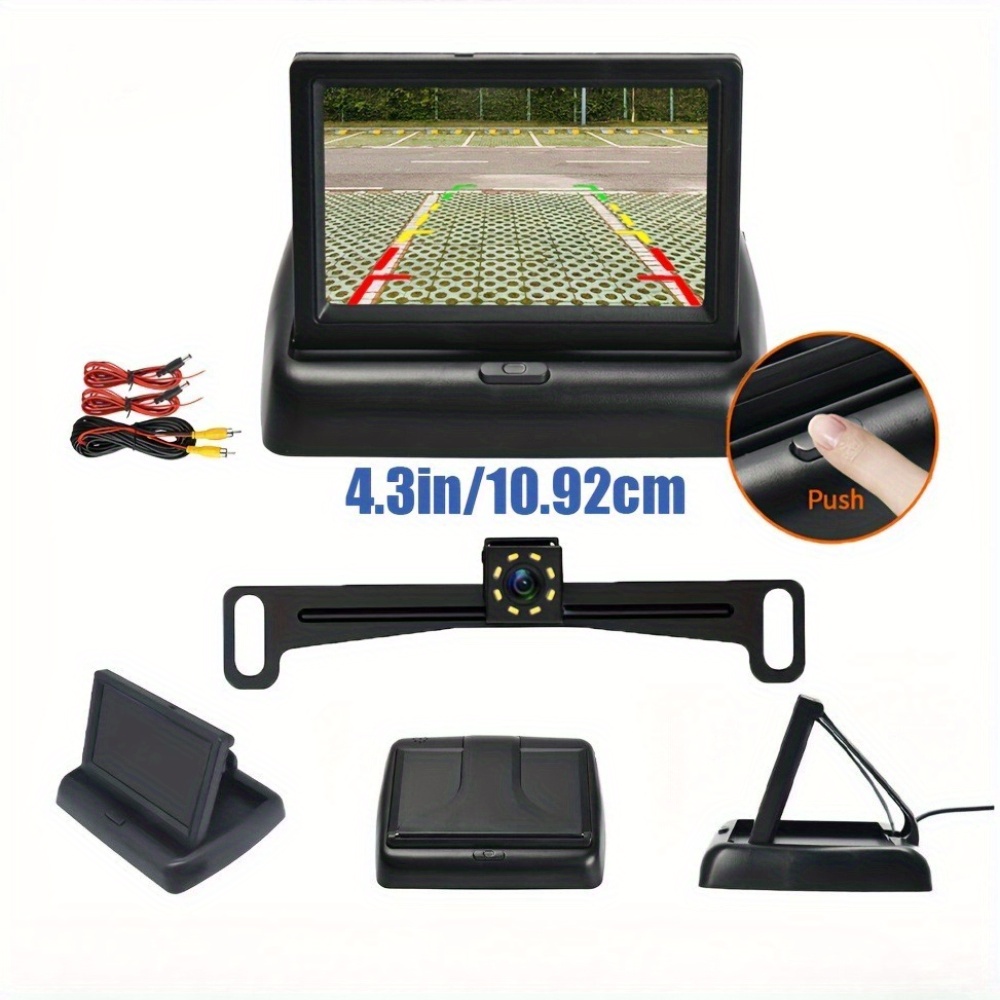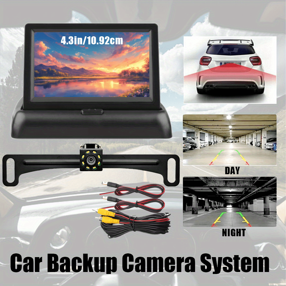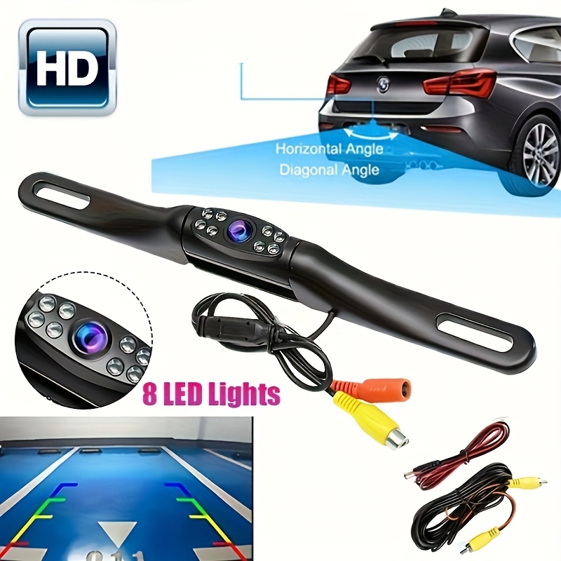 Skshicpc Set za Sigurnost u Automobilu – Sistem sa 8-Svetlosnim Metalnim Nosačem i Kamerom za Vožnju Unazad sa 4.3-Inčnim Ekranom, Visokodefinisani Registarski Tablica Kamera za Vožnju Unazad, Široki Ugao, Lako za Instalaciju – Pogodno za Automobile, Kamper, Pikape i SUV-ove, Bez Baterije