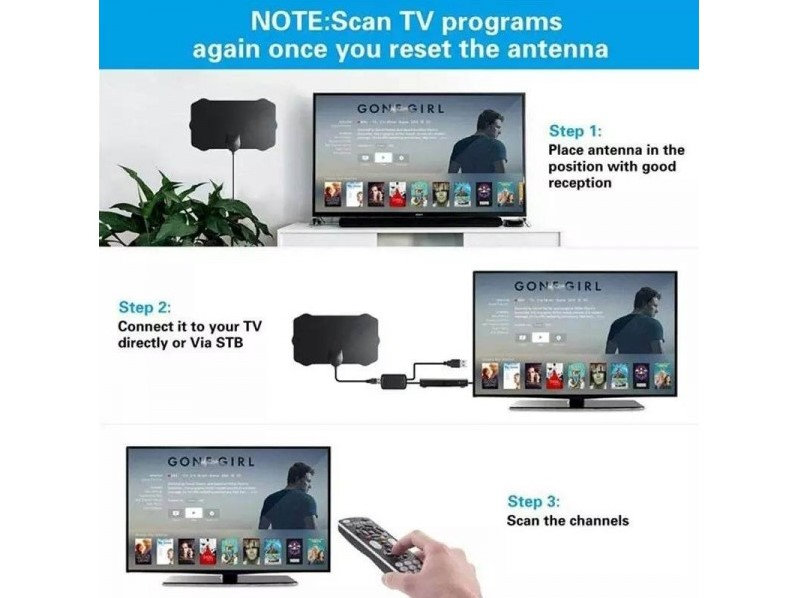 Digitalna Sobna HD TV antenna super tanka, DVB-T2, Full HDTV, UHF, VHF, HEVC-H.265