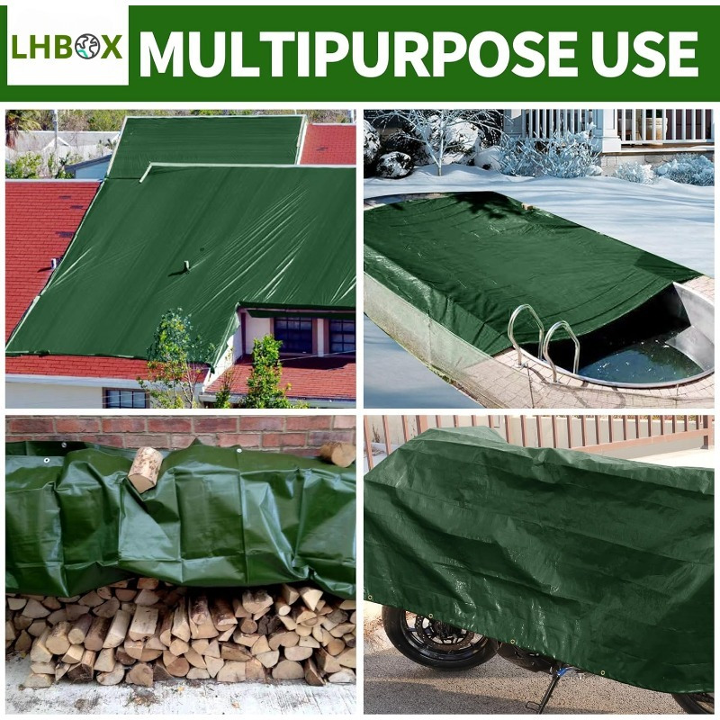 Spoljna cerada, više opcija veličina, sa metalnim ušicama, za kampovanje, vodootporna, za bazen, kućnu upotrebu, dvostrana vojno zelena, debljine 5 mil