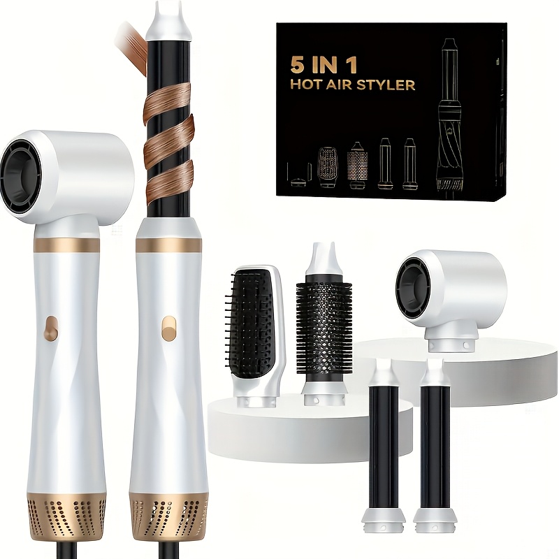 STYLEFI Visokokvalitetni Električni 5-u-1 Profesionalni Set za Stilizovanje Vrućim Vazduhom Sadrži Fen za Kosu od 1000W, Uvijač, Pegla za Kosu, Olu Četku i Difuzor. To je Svestrana Oprema Salonskog Kvaliteta sa Odvojivim Multifunkcionalnim Alatima za Stilizovanje