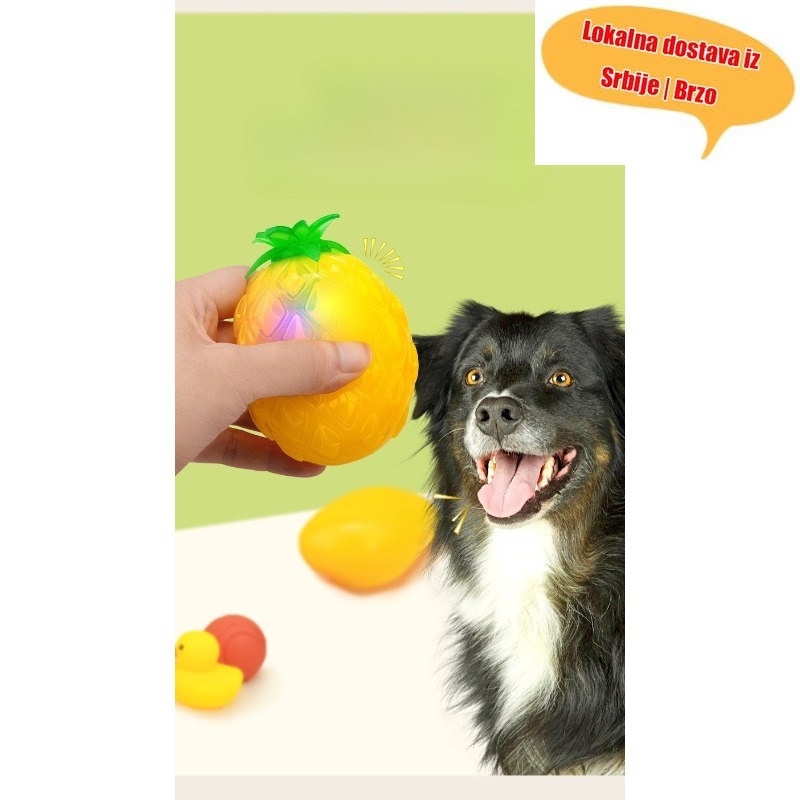 Svetleća igračka ananas dizajnirana za pse da oslobodi dosadu, pomaže pri nicanju zuba i služi kao izdržljiva interaktivna igračka za trening