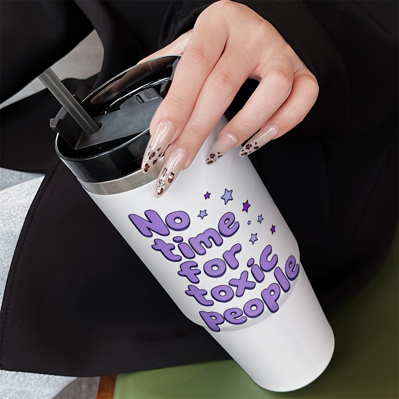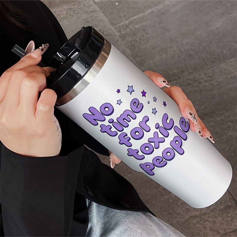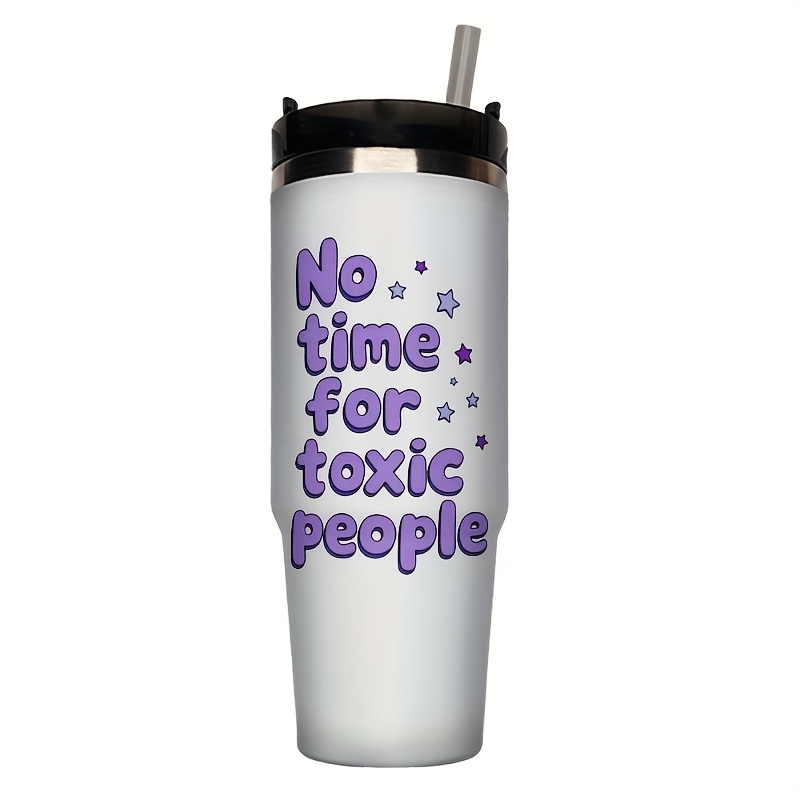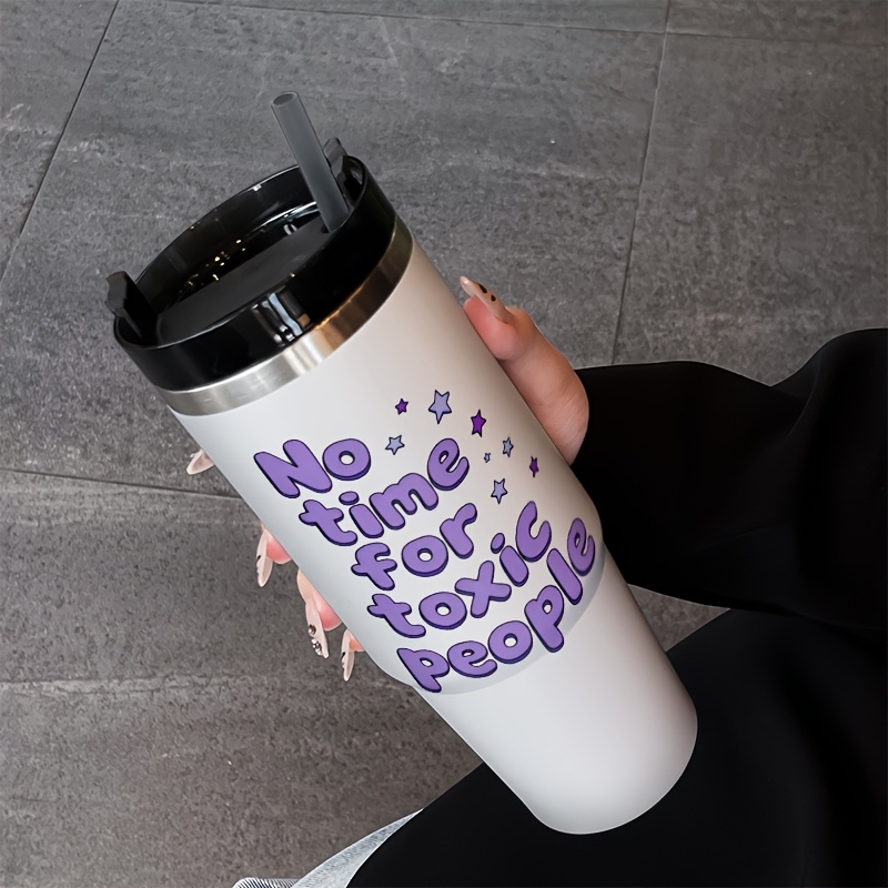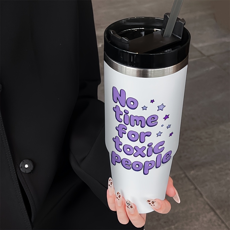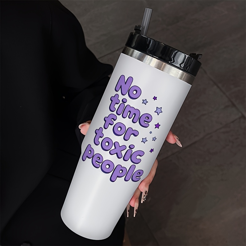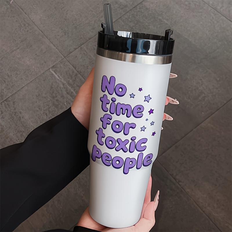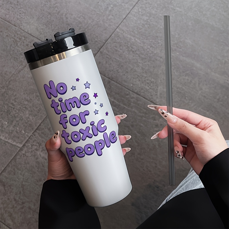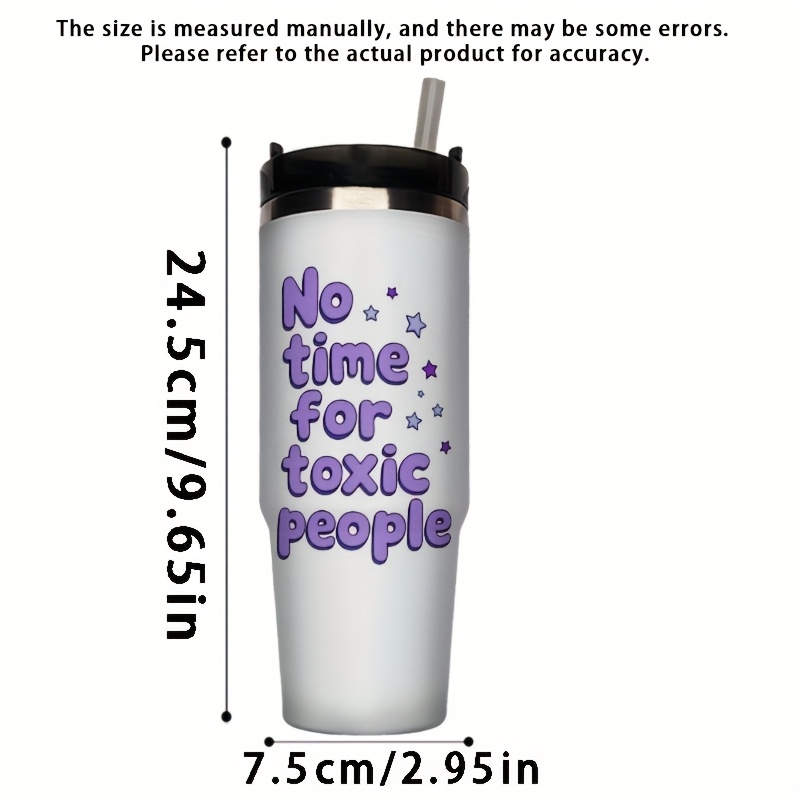 Termos boca od nerđajućeg čelika 30oz sa slamčicom – Dizajn „Nema vremena za toksične ljude“, nepropusna, prenosiva putna šolja za tople i hladne napitke, savršena za kancelariju, kuću, sport i poklone, posuđe za piće u kancelariji | Trendi termos | Izdržljivo posuđe za piće, putna šolja za kafu, šolja za kafu, šolja za kafu za nošenje, kampovanje, šolja za kafu, čaša i šolja, termo čaša za kafu, termo čaša, termo čaša za kafu za nošenje, termo čaša otporna na prosipanje, boca za piće
