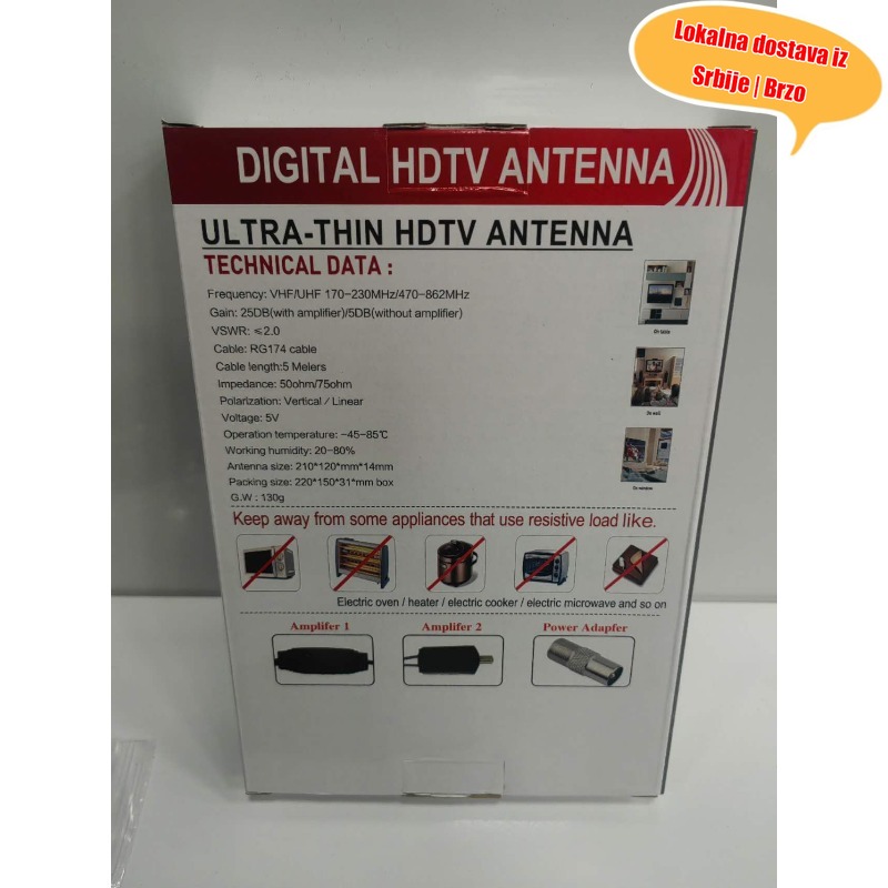 Ultra-tanka zidna digitalna TV antena, pojačanje signala do 80 km (50 milja), unutrašnja HD HDTV antena, besplatni HD kanali, podržava 4K/1080P ATSC format