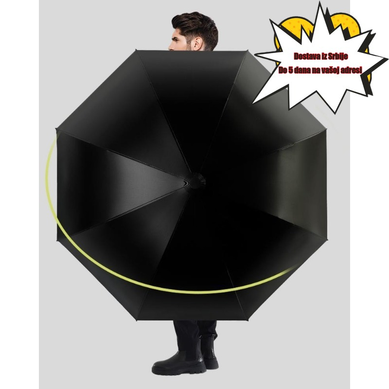 Veliki ravni kišobran sa dugom drškom, vodootporan, pogodan za golf.