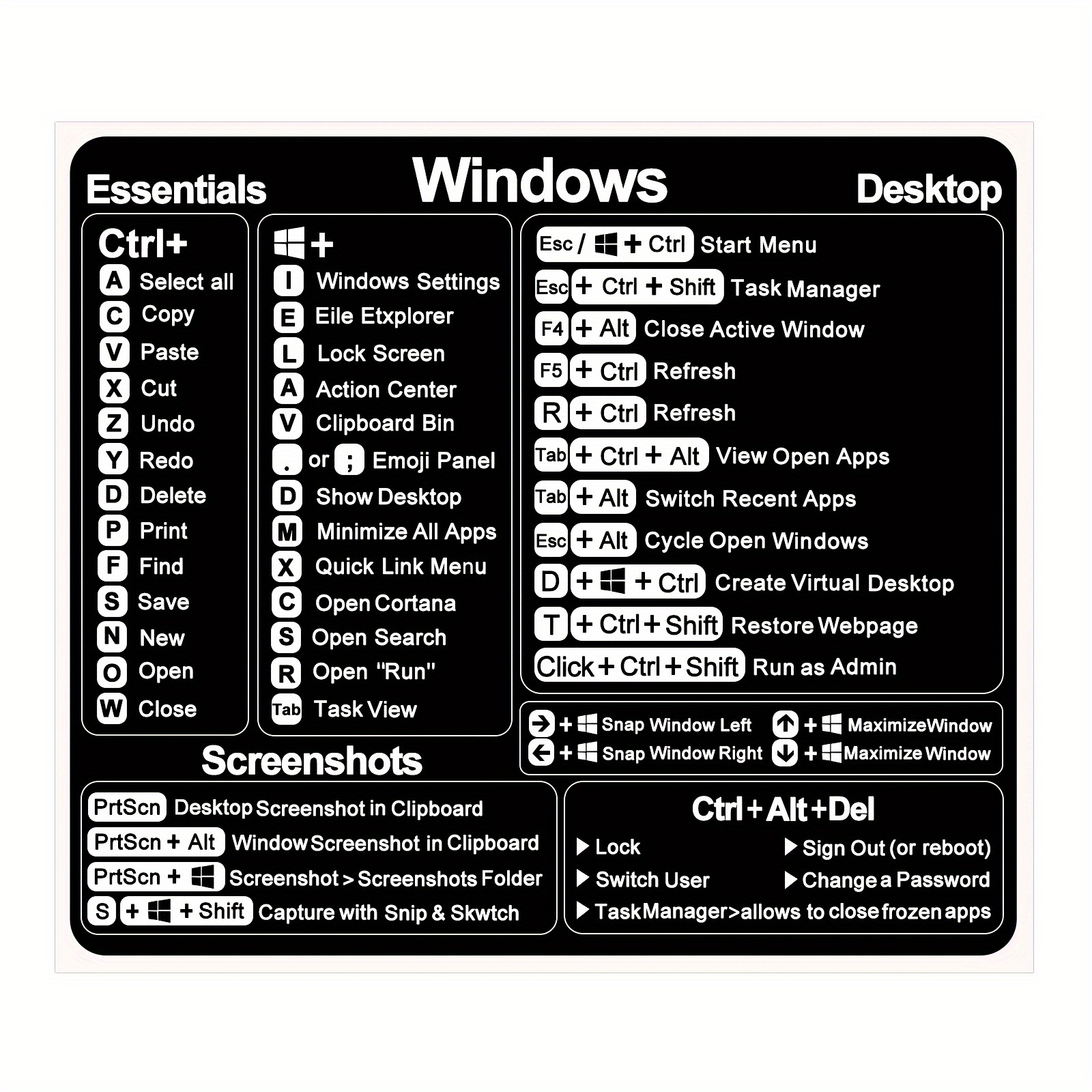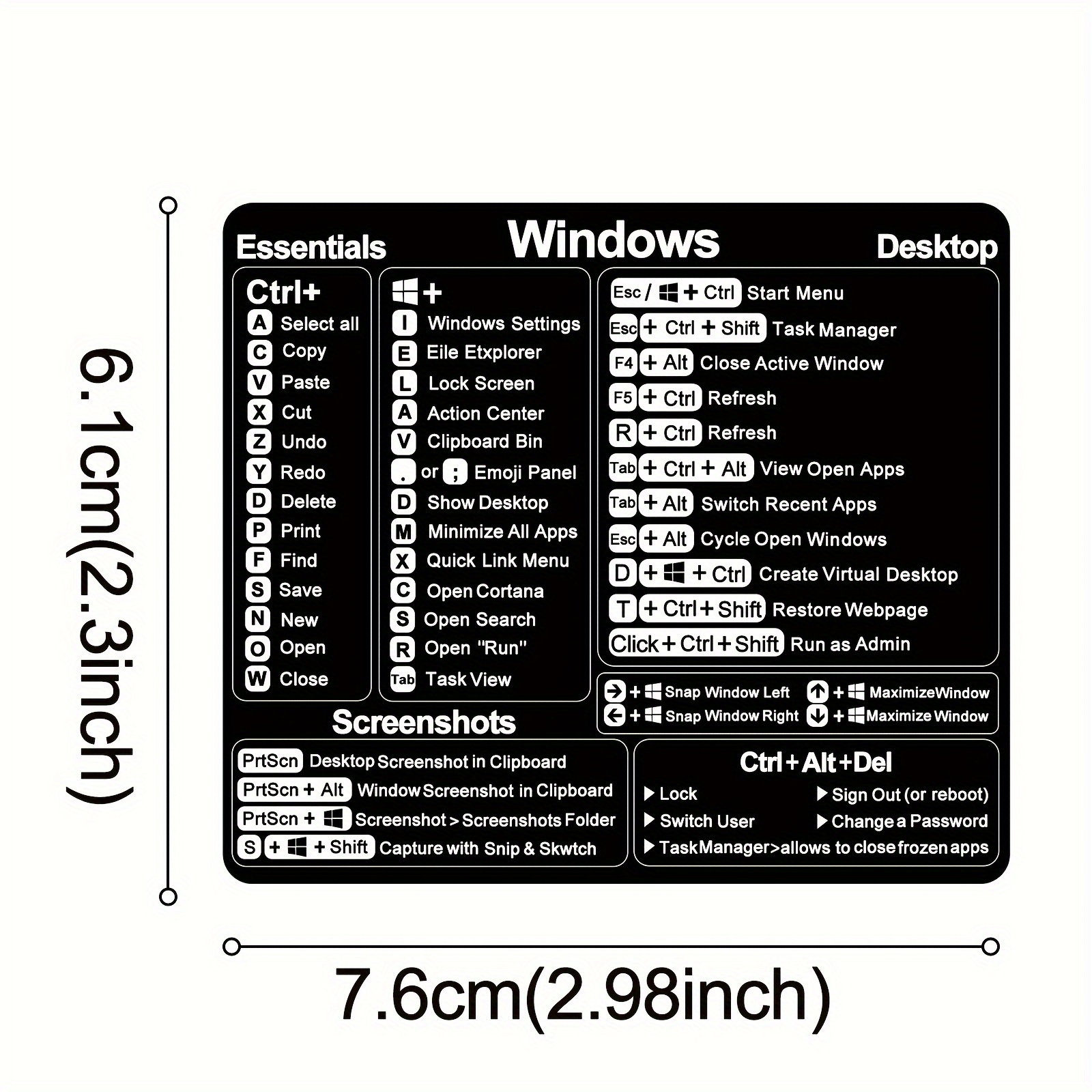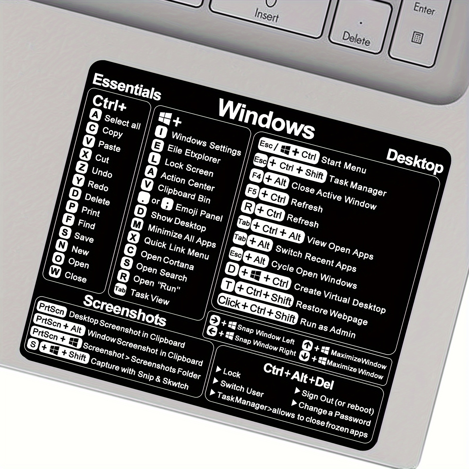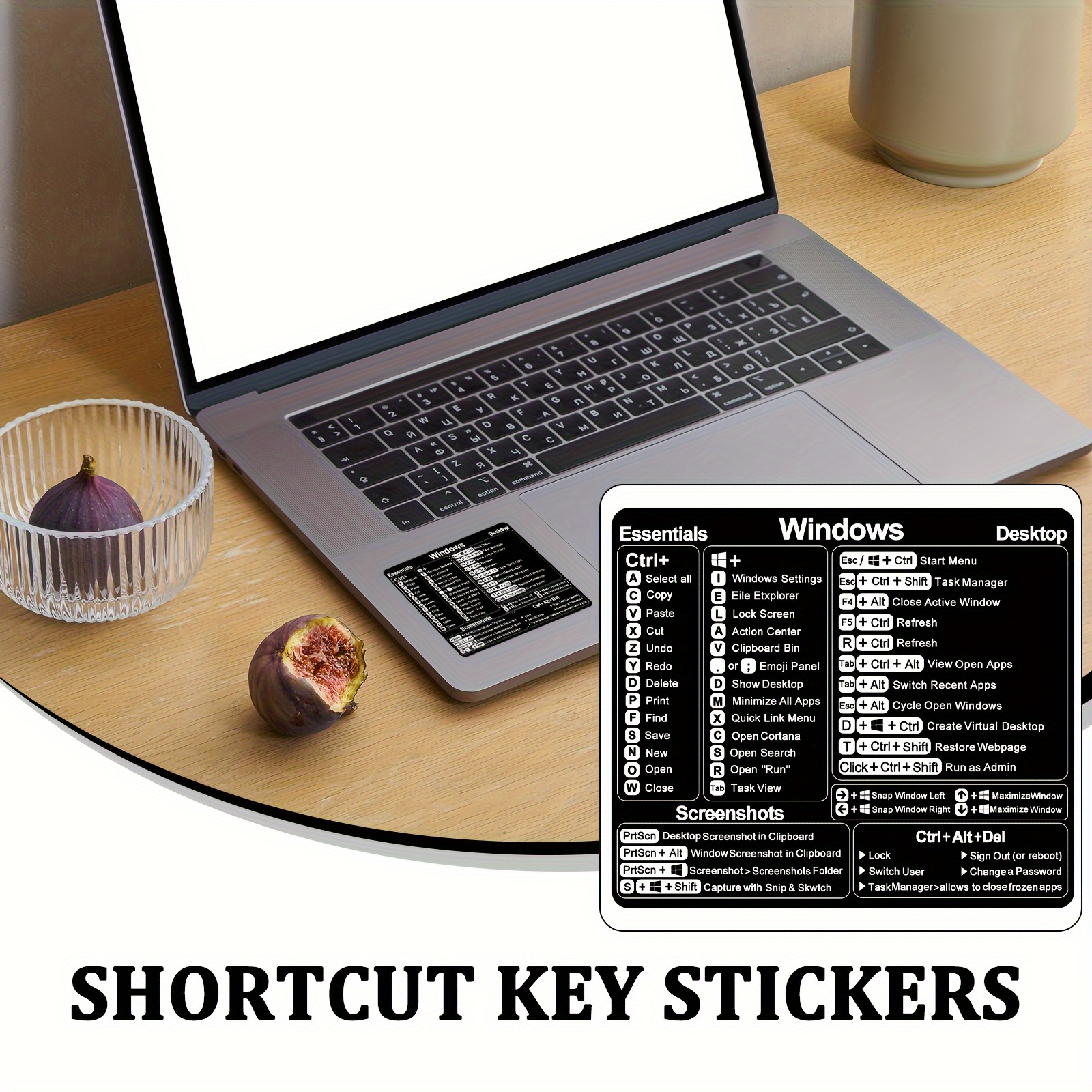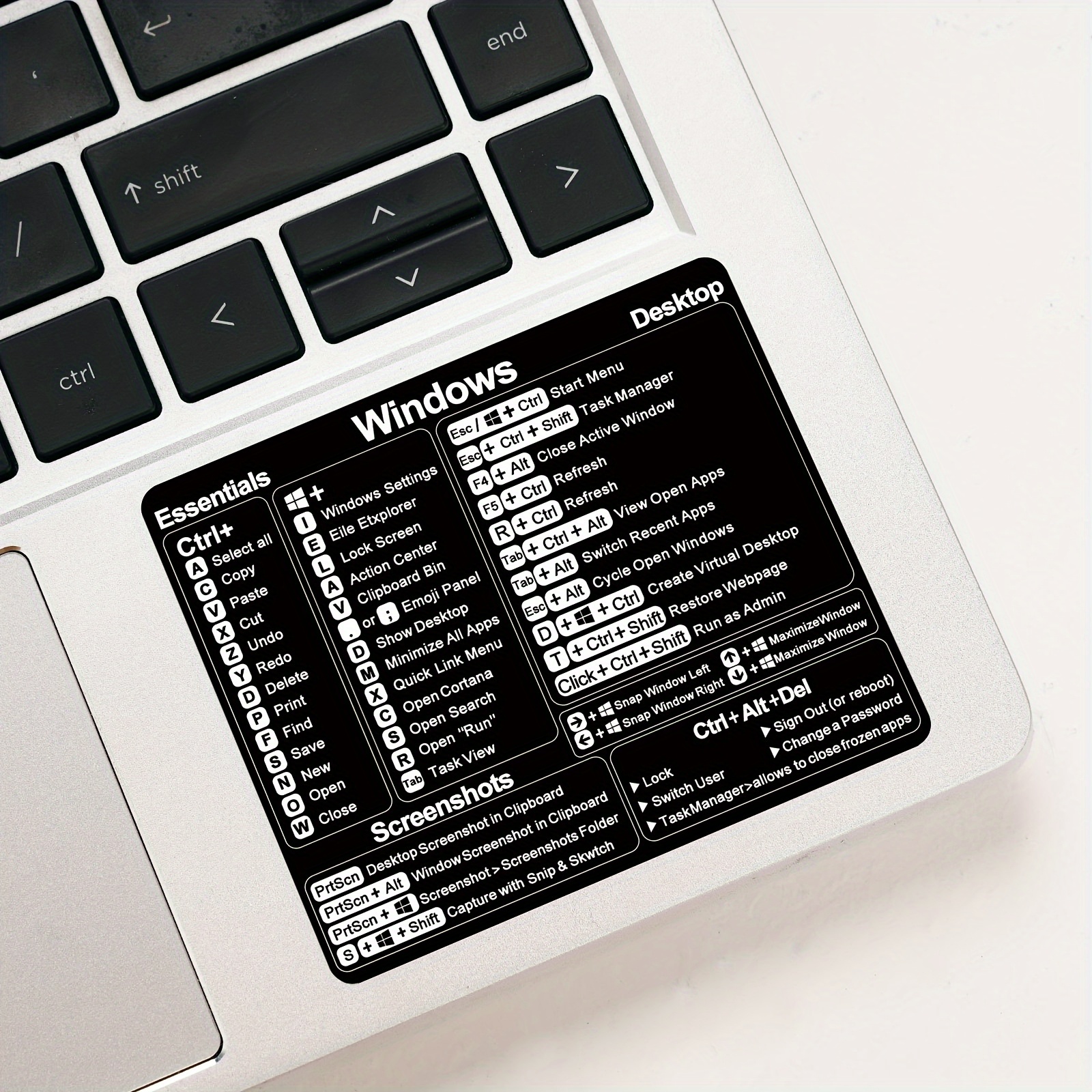 Vinilna nalepnica sa Windows tipkovničkim prečicama – Dekoracija za desktop računare i laptopove, dizajnirana u crnoj boji, napravljena od izdržljivog uklonjivog lepljiva materijala za organizaciju, nalepnice za laptop.