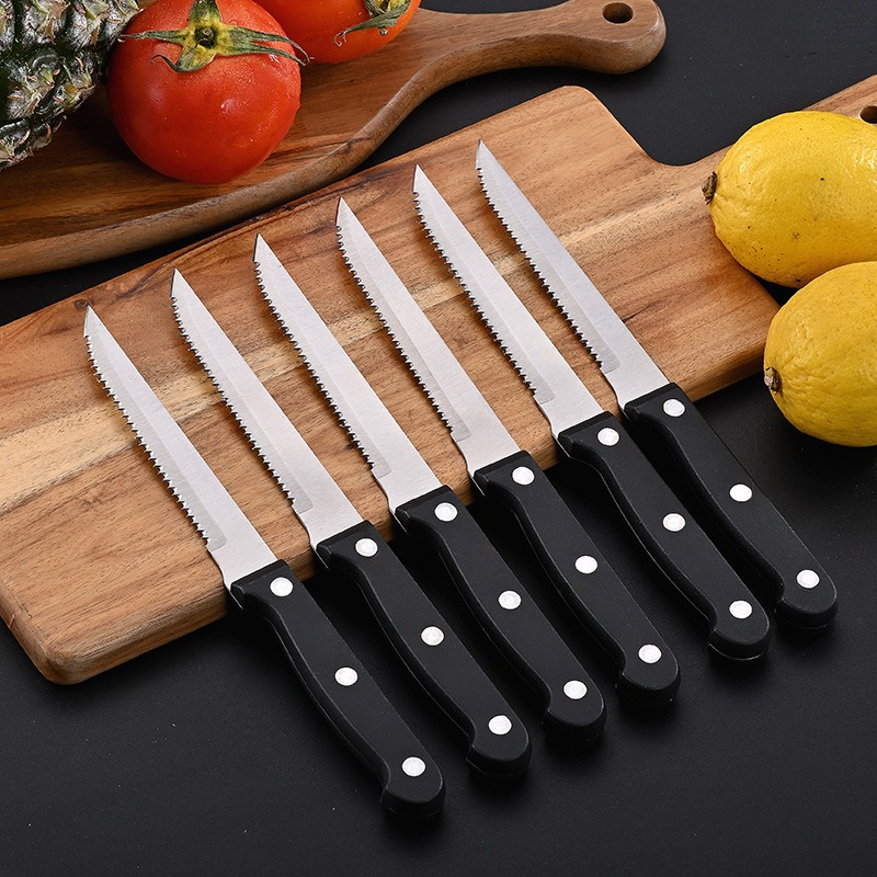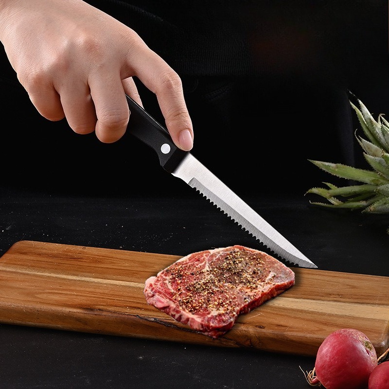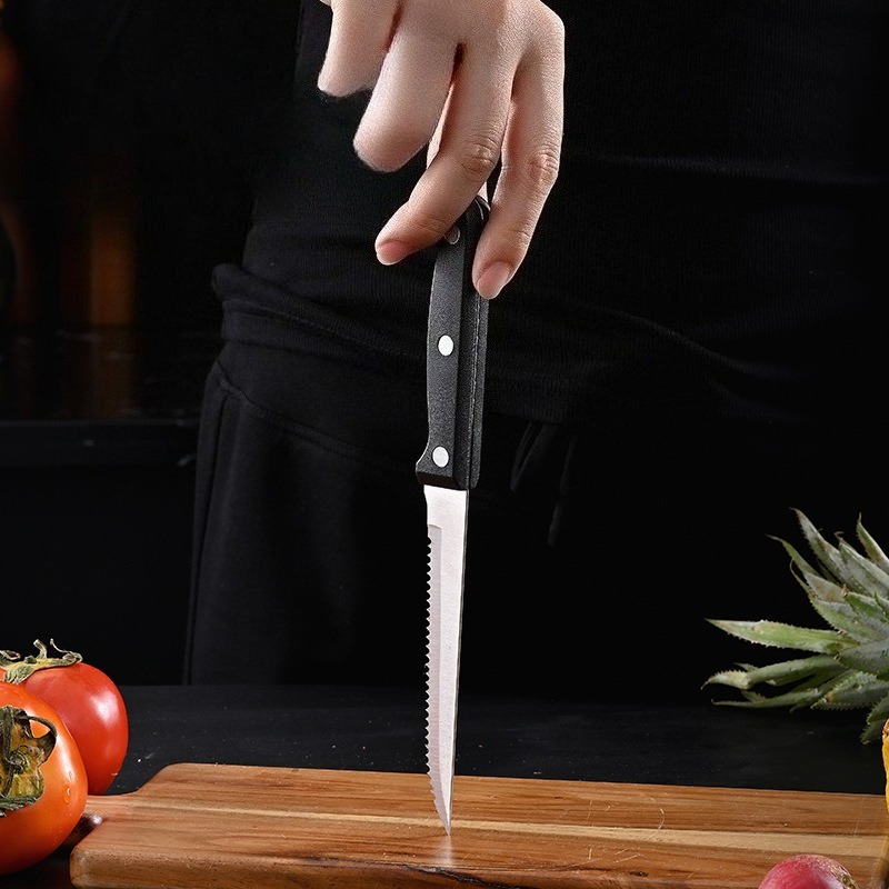 Višenamenski nazubljeni nož za biftek – Oštrica od nerđajućeg čelika sa plastičnom drškom za kuhinju i hotel