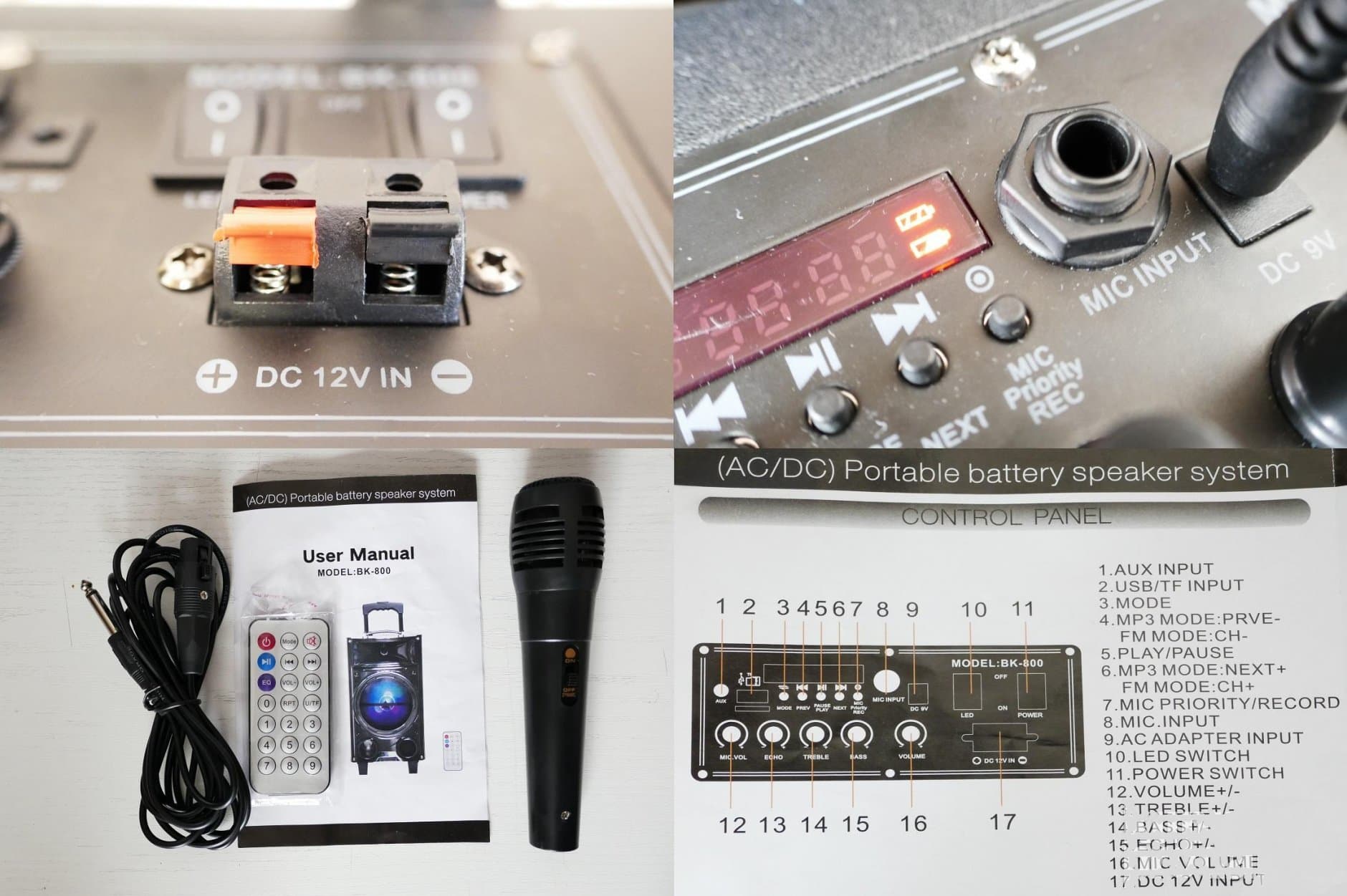 - – Ovaj zvučnik ima integrisanu punjivu bateriju koja se puni punjacem izlazne snage AC/DC 9V koji se takodje dobija u pakovanju.